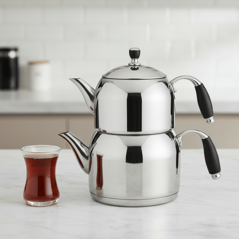 Den øverste kande på 1,5 liter holder teen varm og koncentreret, mens den nederste kande på 3 liter opvarmer vandet effektivt. Tekanden er velegnet til induktions-, keramiske og elektriske kogeplader, hvilket gør den alsidig i ethvert moderne køkken.