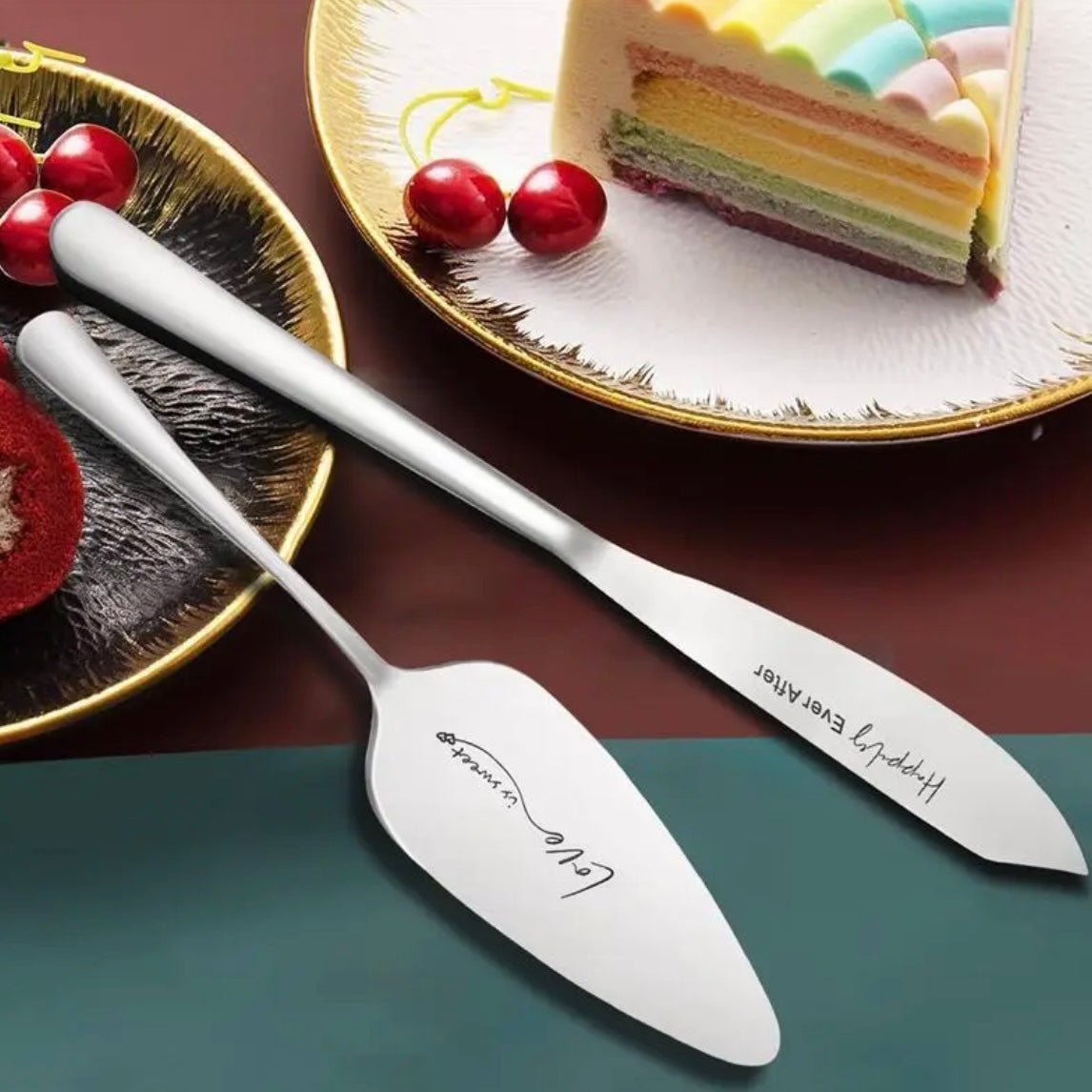 Sættet er skabt til at fejre kærligheden ved et bryllup. De fine detaljer og den stilfulde form gør dem perfekte til den særlige bryllupsskål, skæring af bryllupskagen og et mindeværdigt øjeblik.