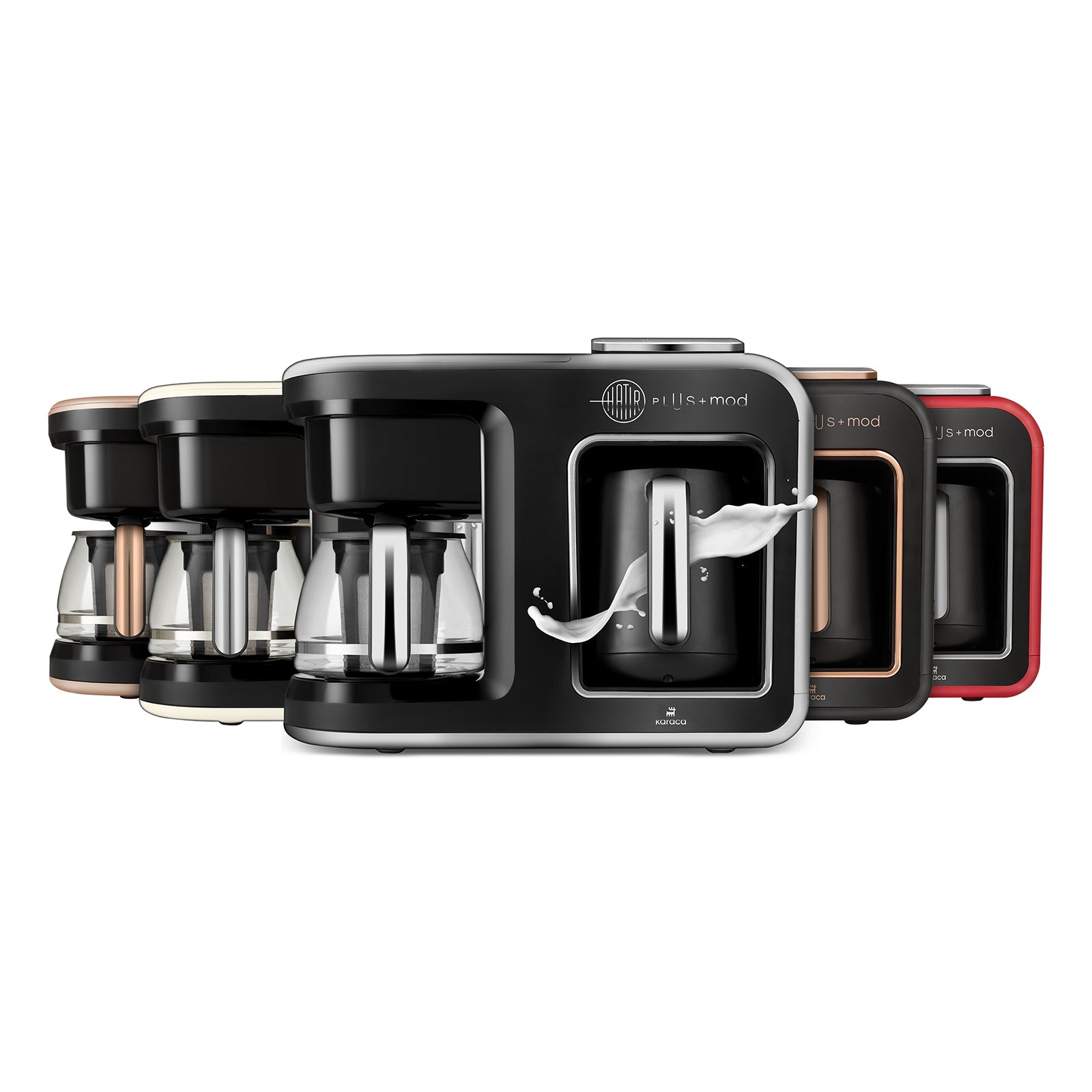 Oplev Karaca Hatır Plus Mod, kaffemaskinen der tilbereder din kaffe efter dit humør. Denne innovative 5-i-1 kaffemaskine er verdens første og eneste, der kan brygge filterkaffe eller te samtidig med, at den tilbereder ristet tyrkisk kaffe og mælkebaserede drikke.