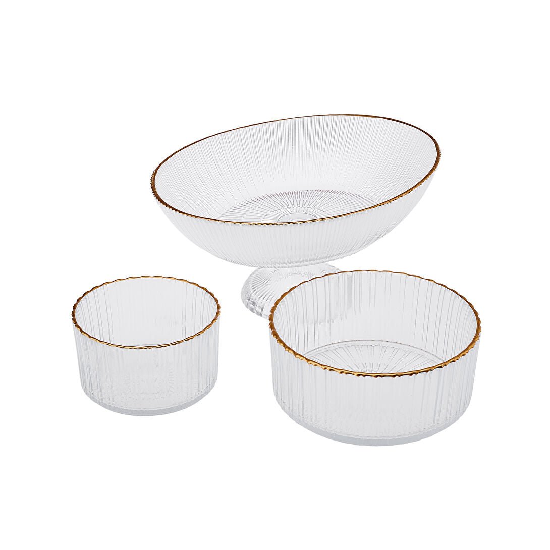 Karaca Pierre Glas Serveringssæt med 3 Skåle | Guldkant