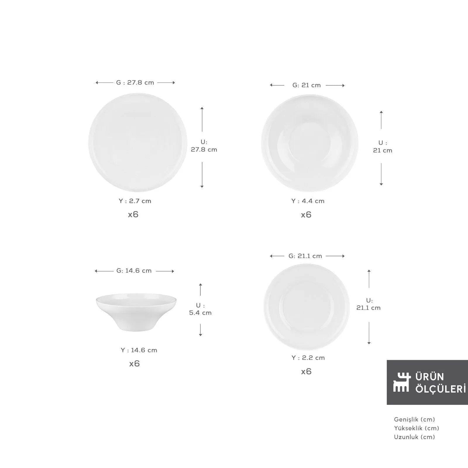 Indeholder: flade tallerkener, dybe tallerkener, desserttallerkener og serveringsdele.