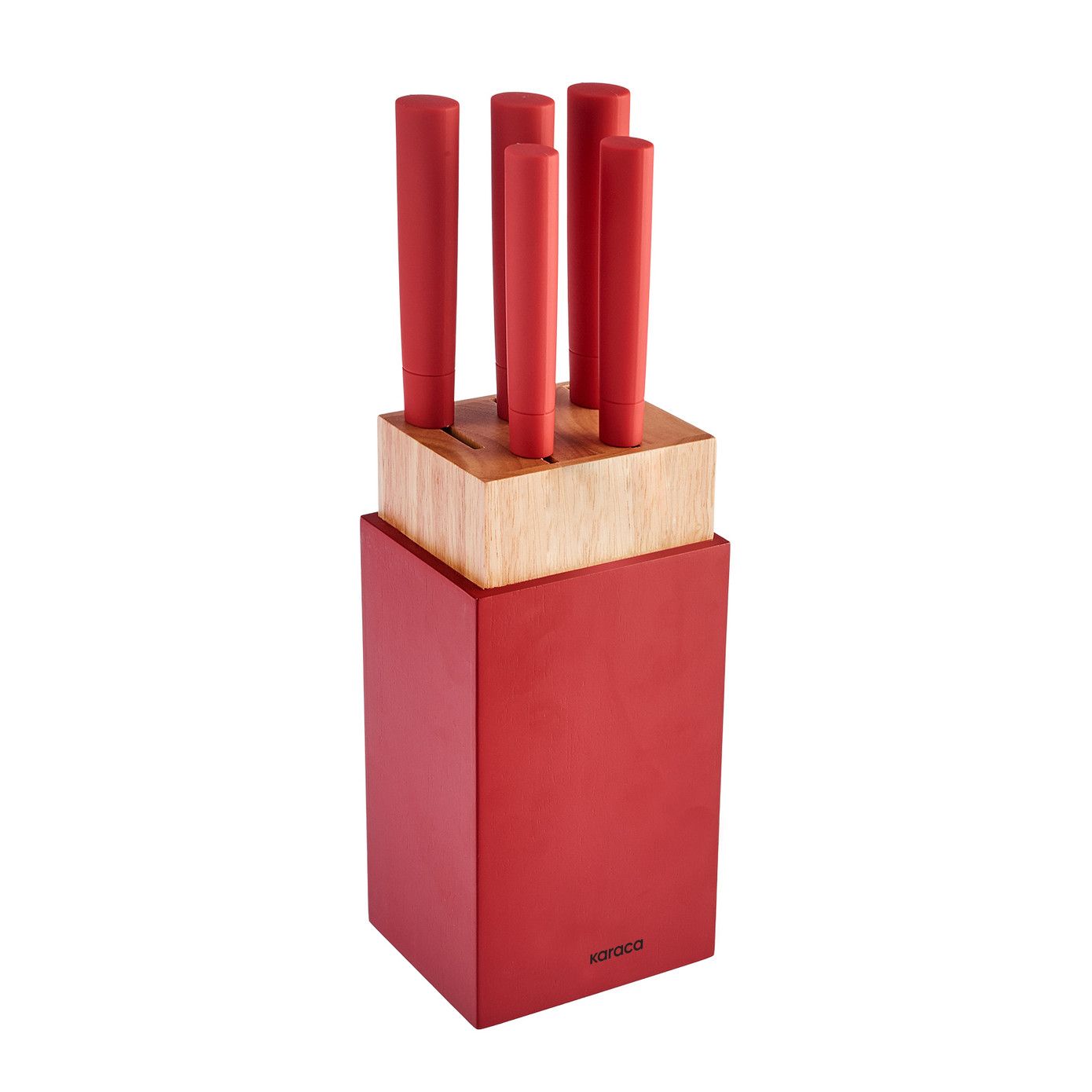 Sættet består af 5 knive med non-stick belægning og 1 knivholder.