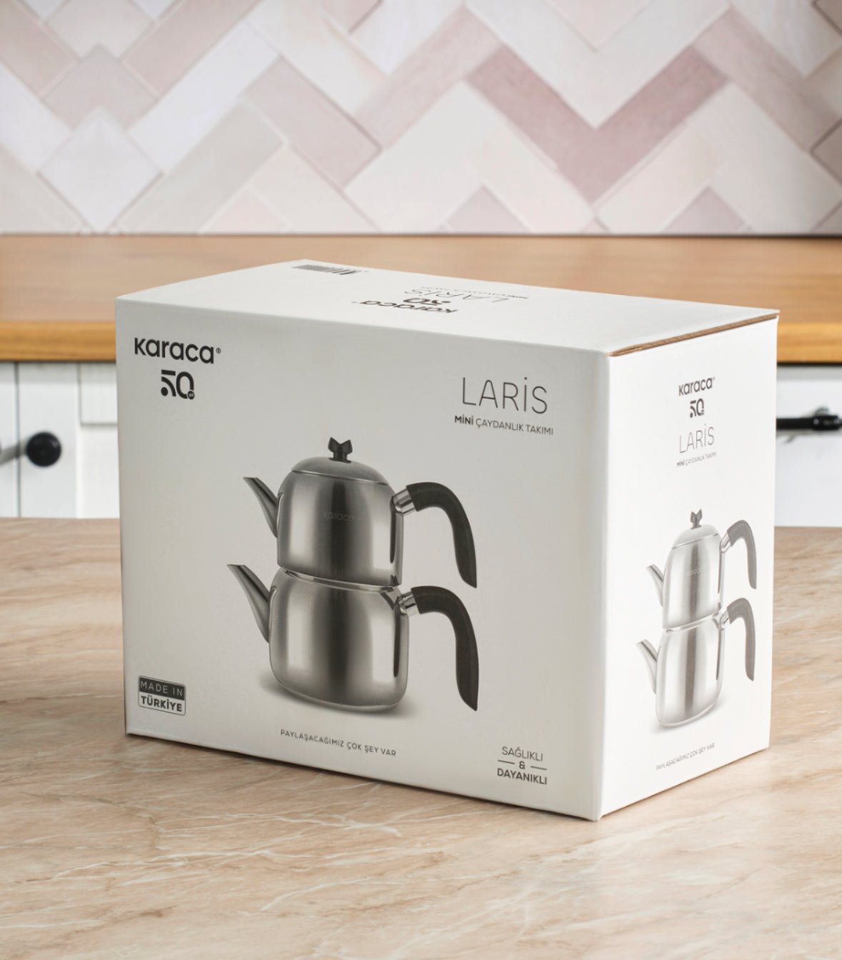 Karaca Laris mini tekandesæt kombinerer funktionalitet og moderne design og er et oplagt valg til dig, der ønsker en klassisk teoplevelse i en praktisk størrelse.
