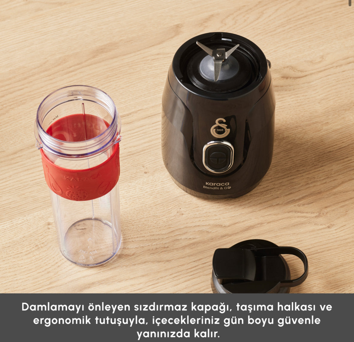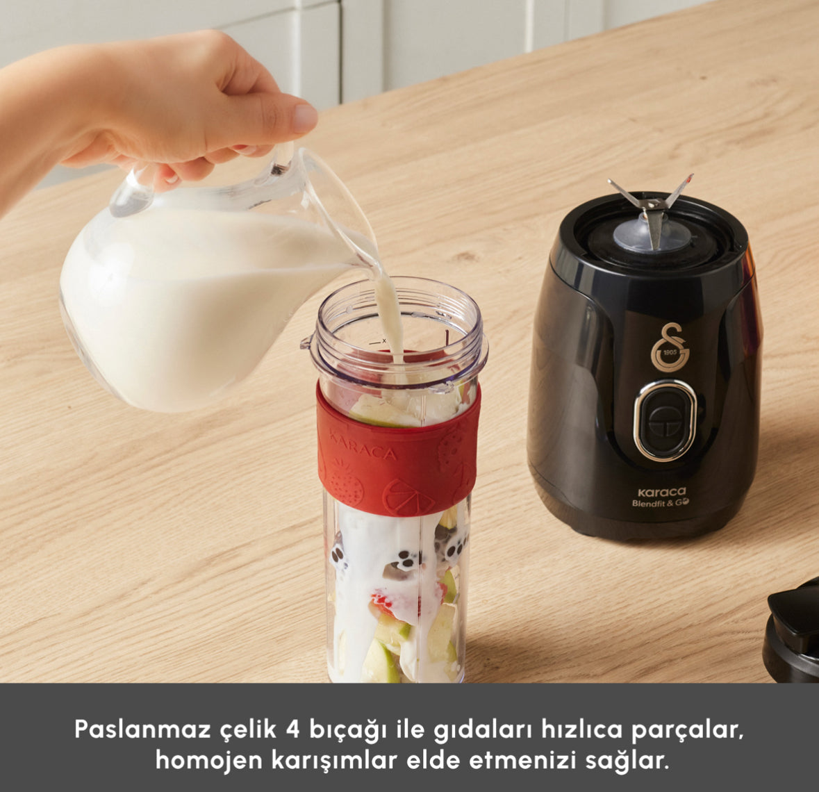 Karaca Blendfit Go Personal er en praktisk og alsidig personlig smoothie­blender, ideel til daglig brug i hjemmet, på kontoret eller på farten. Den kombinerer funktionalitet med et stilrent design og gør det nemt at lave friske smoothies, shakes og kolde drikke på få minutter.