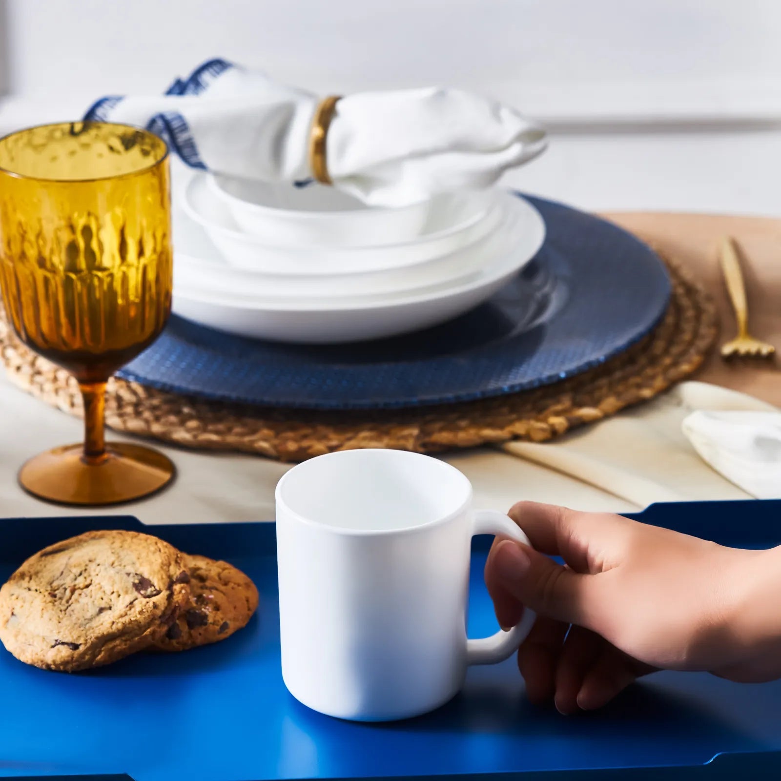 Fremstillet af opalglas – et materiale, der kombinerer glassets gennemsigtighed med porcelænets udseende – er kruset let, holdbart og behageligt at holde om. Den 320 ml kapacitet gør det ideelt til varme drikke som kaffe, te, cappuccino eller kakao.