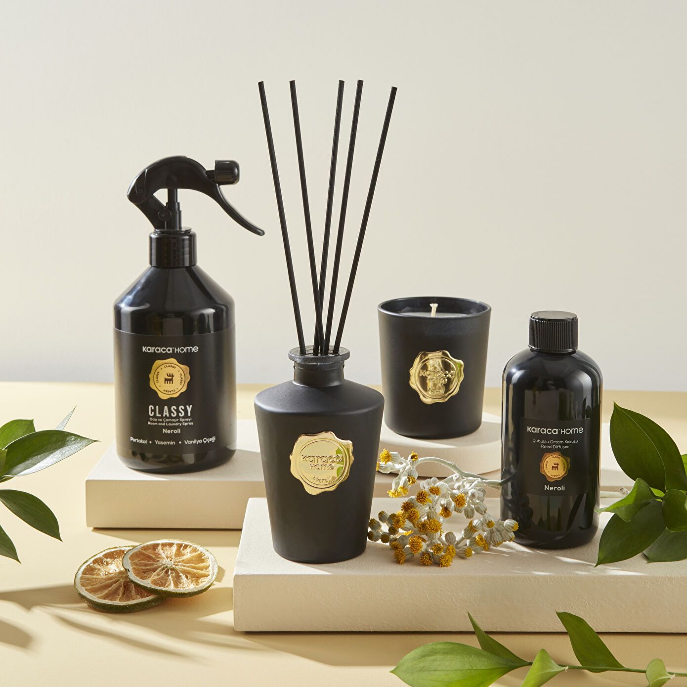 Karaca Home Klassisk Rørdiffuser Neroli er en dekorativ og elegant duftspreder, der fylder dit hjem med en frisk, blomsteragtig og let citrusduft. Den stilrene glasflaske og medfølgende duftpinde sikrer jævn og langvarig spredning af aromaen i stue, badeværelse eller entré.