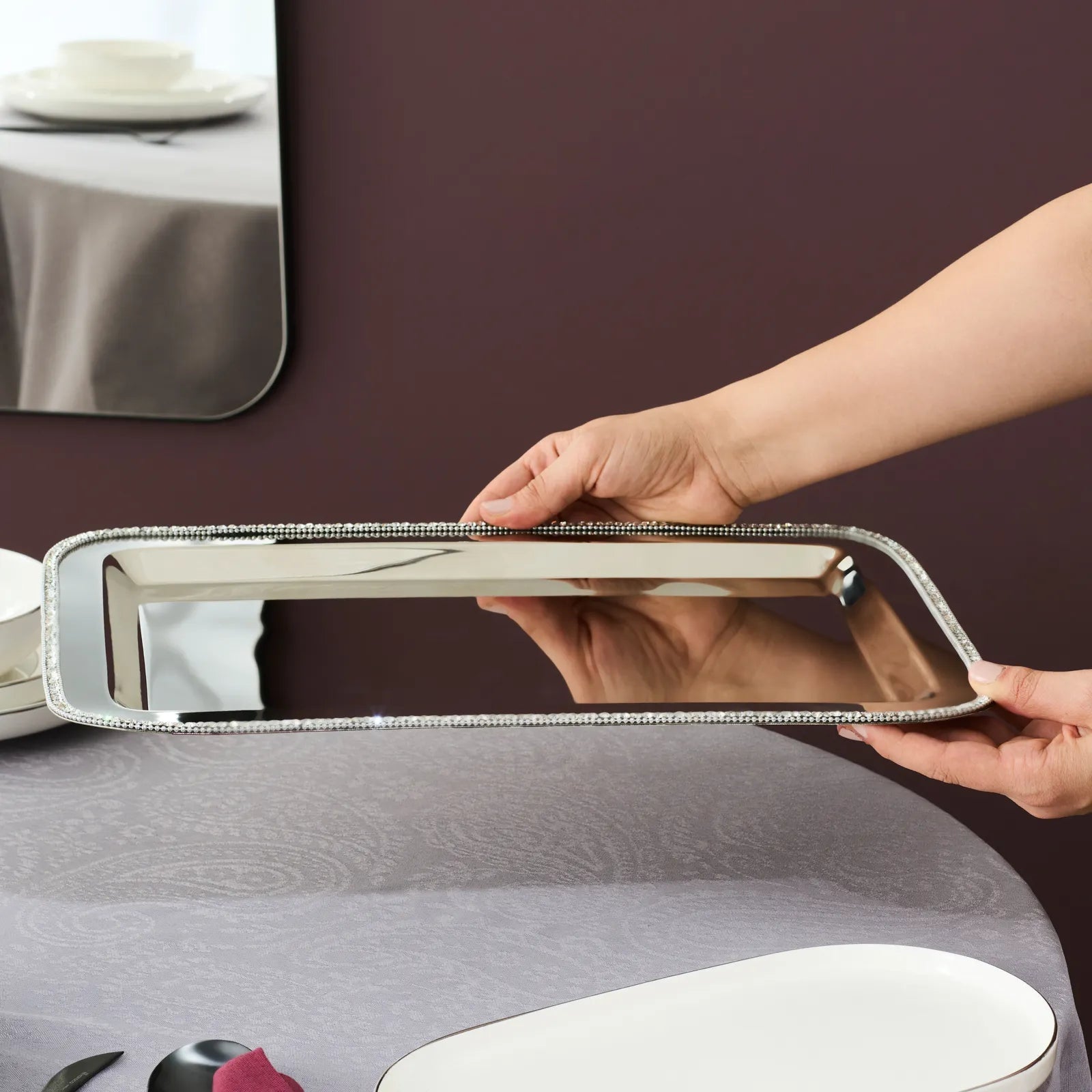 Karaca Majesty Dekorativ Serveringsbakke – Rektangulær 42 × 29,5 cm (Sølv)