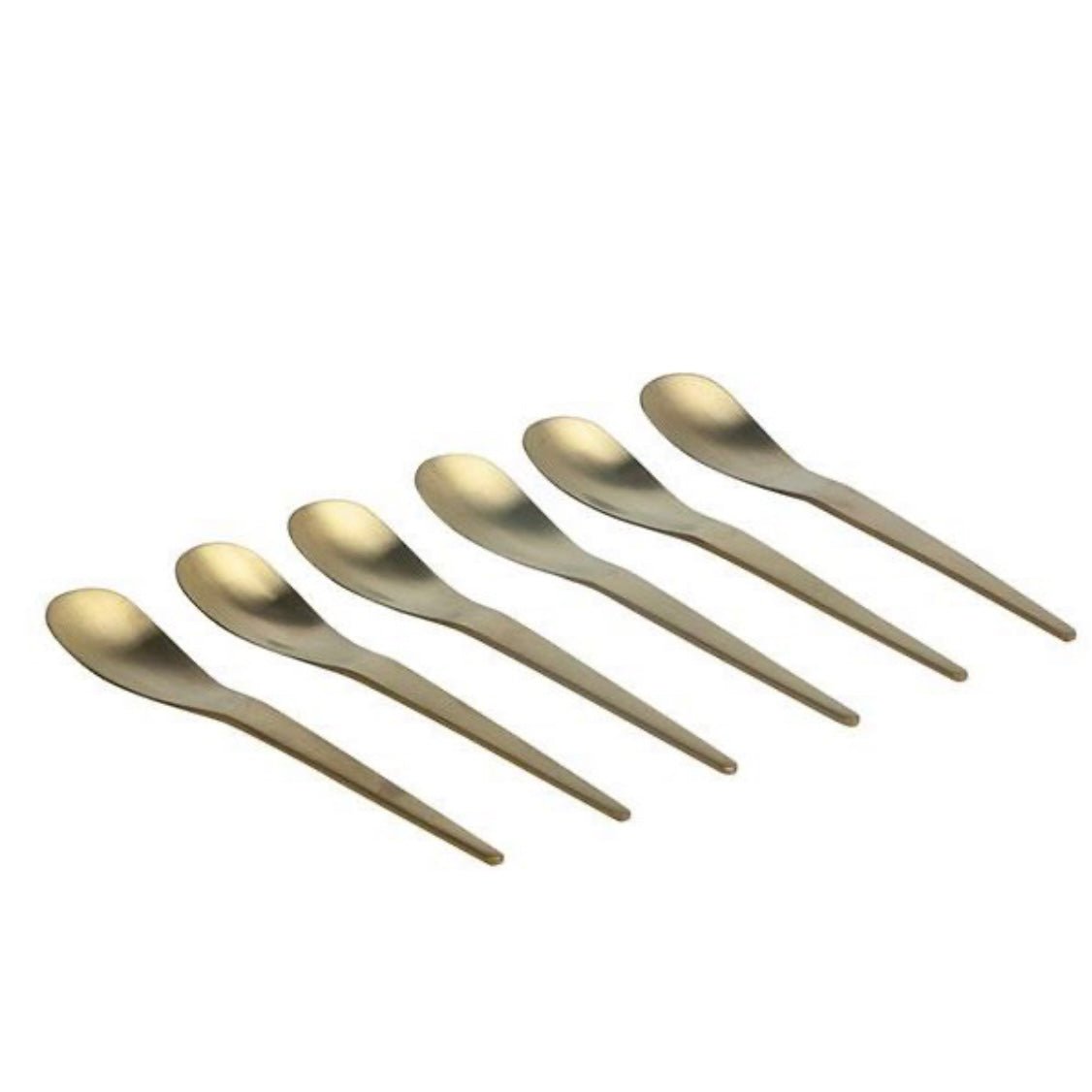 Antal: 6 x teskeer/kaffeskeerFarve: Guld matMateriale: 18/10 poleret rustfrit stålLængde: 12 cmModel: TarzMærke: Ferveo