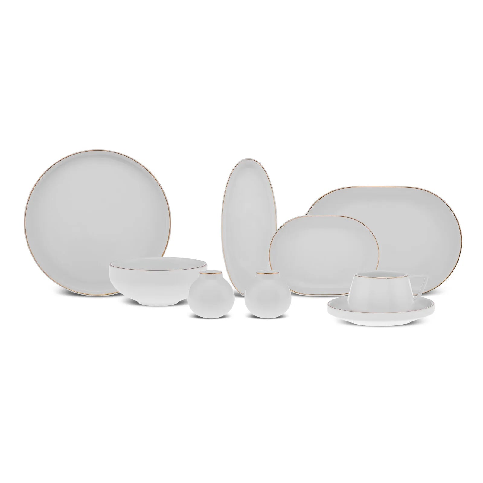 Karaca Stream Bone Meridian Morgenmadssæt | 34 dele | 6 personer | Guld