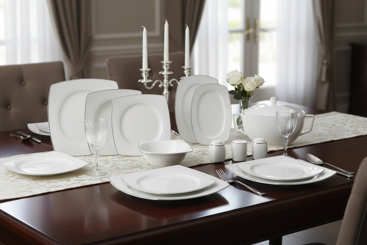 Karaca Tasia Fine Cream Middagssæt | 60 dele | 12 personer | Kvadratisk