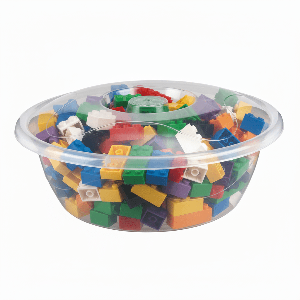 Praktisk og rummelig rund opbevaringsbøtte i slidstærk plastik. Perfekt til opbevaring af madvarer, legetøj, værktøj eller andre småting.