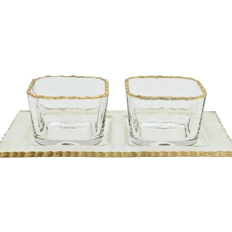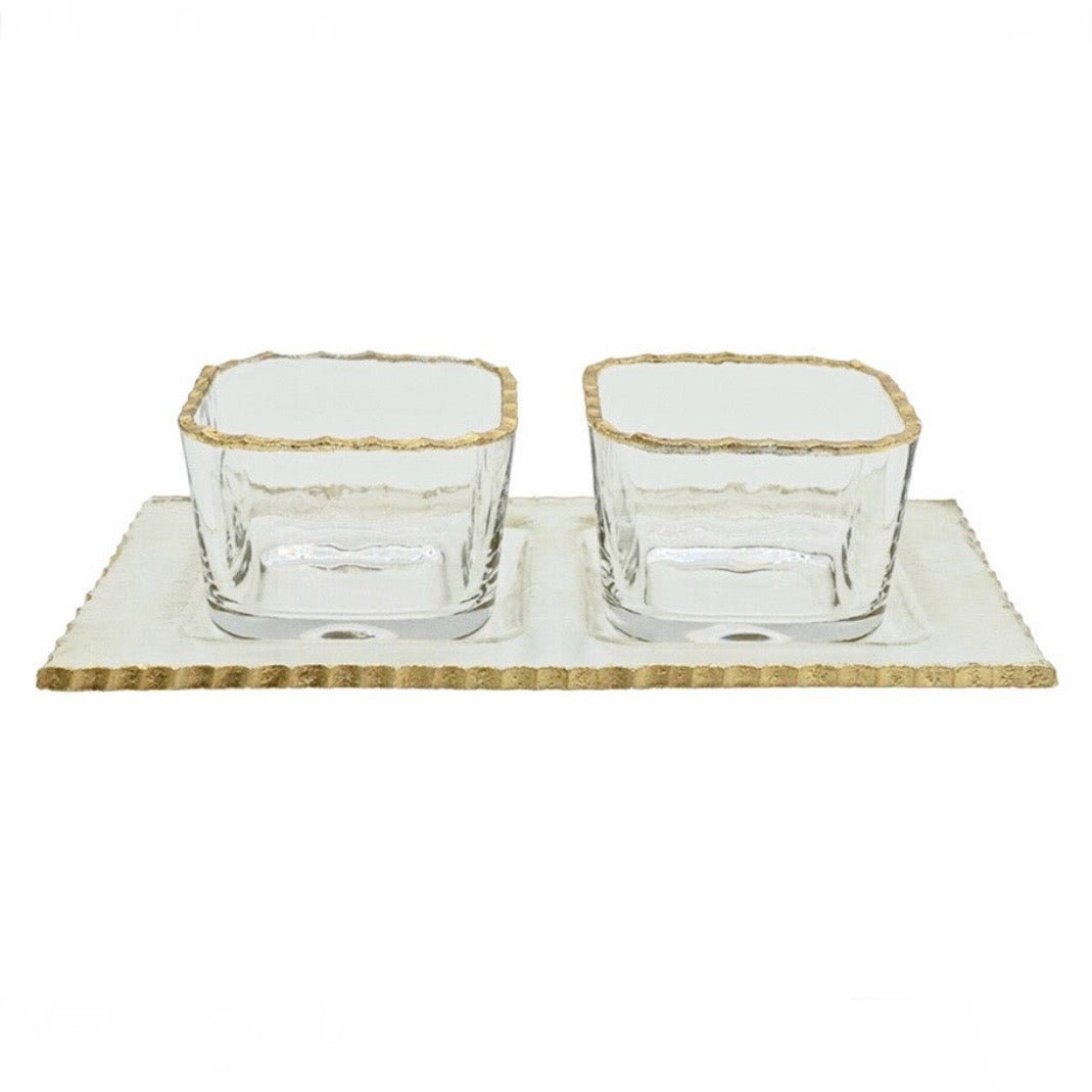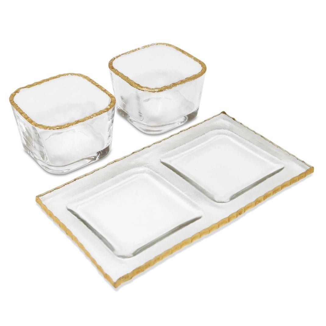 3-delt Glasskålesæt med Guldkant – inkl. Glasbakke