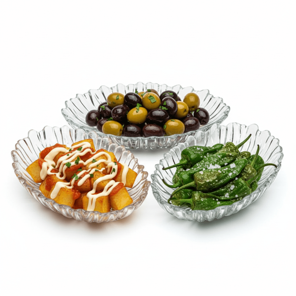 Et praktisk og dekorativt tapassæt, der løfter din borddækning og giver en smuk præsentation – perfekt til tapaselskere og dig, der værdsætter elegant servering.