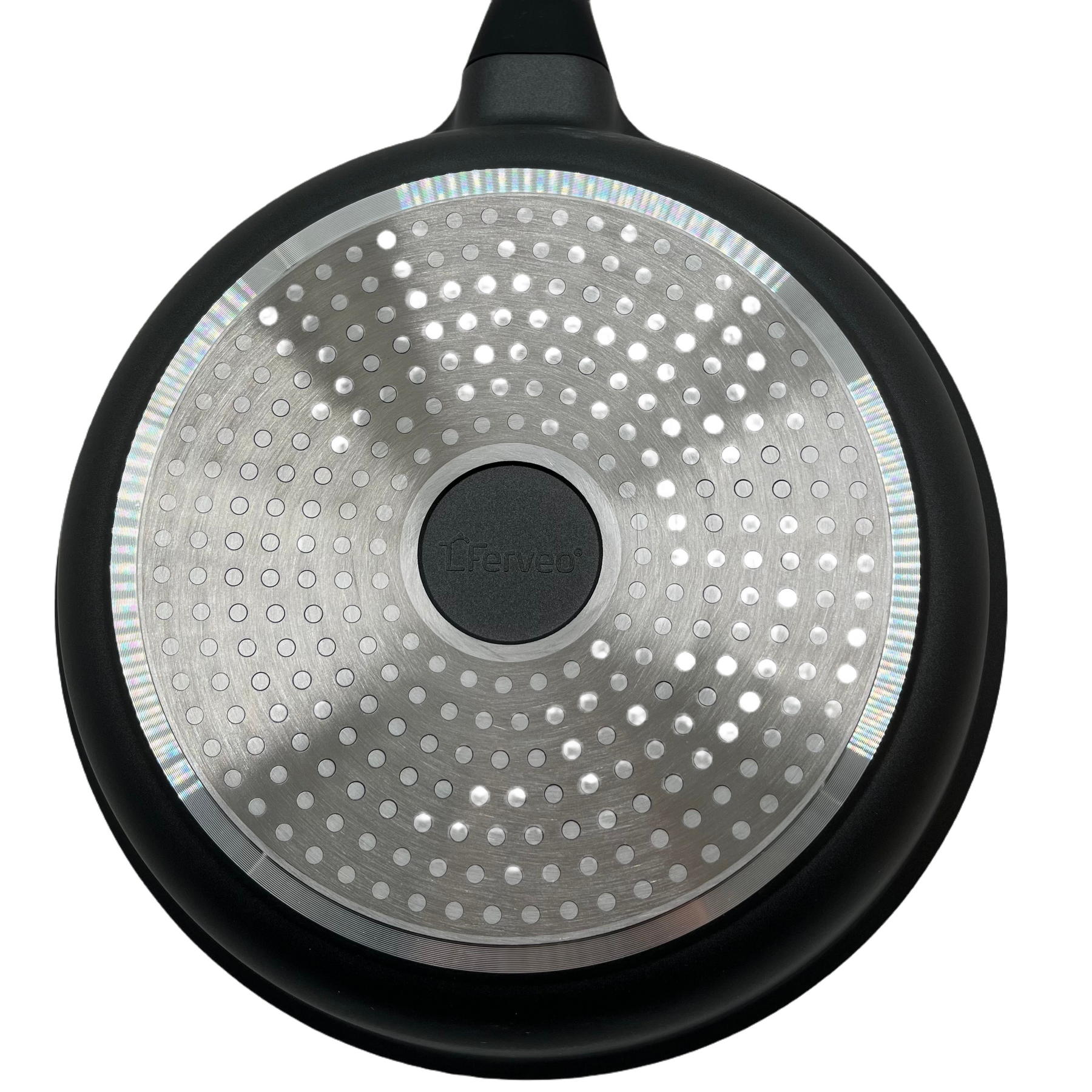 Marmorbelagt dyb stegepande med non-stick effekt og varmeresistente bakelit håndtag