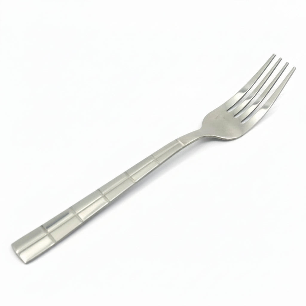 Det firkantede mønster på skaftet giver gaflerne et eksklusivt udtryk og et sikkert greb, mens det robuste rustfrie stål sikrer lang holdbarhed og nem rengøring. Uanset om du dækker op til en middag med gæster eller blot vil opgradere din daglige spiseoplevelse, leverer dette gaffelsæt både stil og komfort.