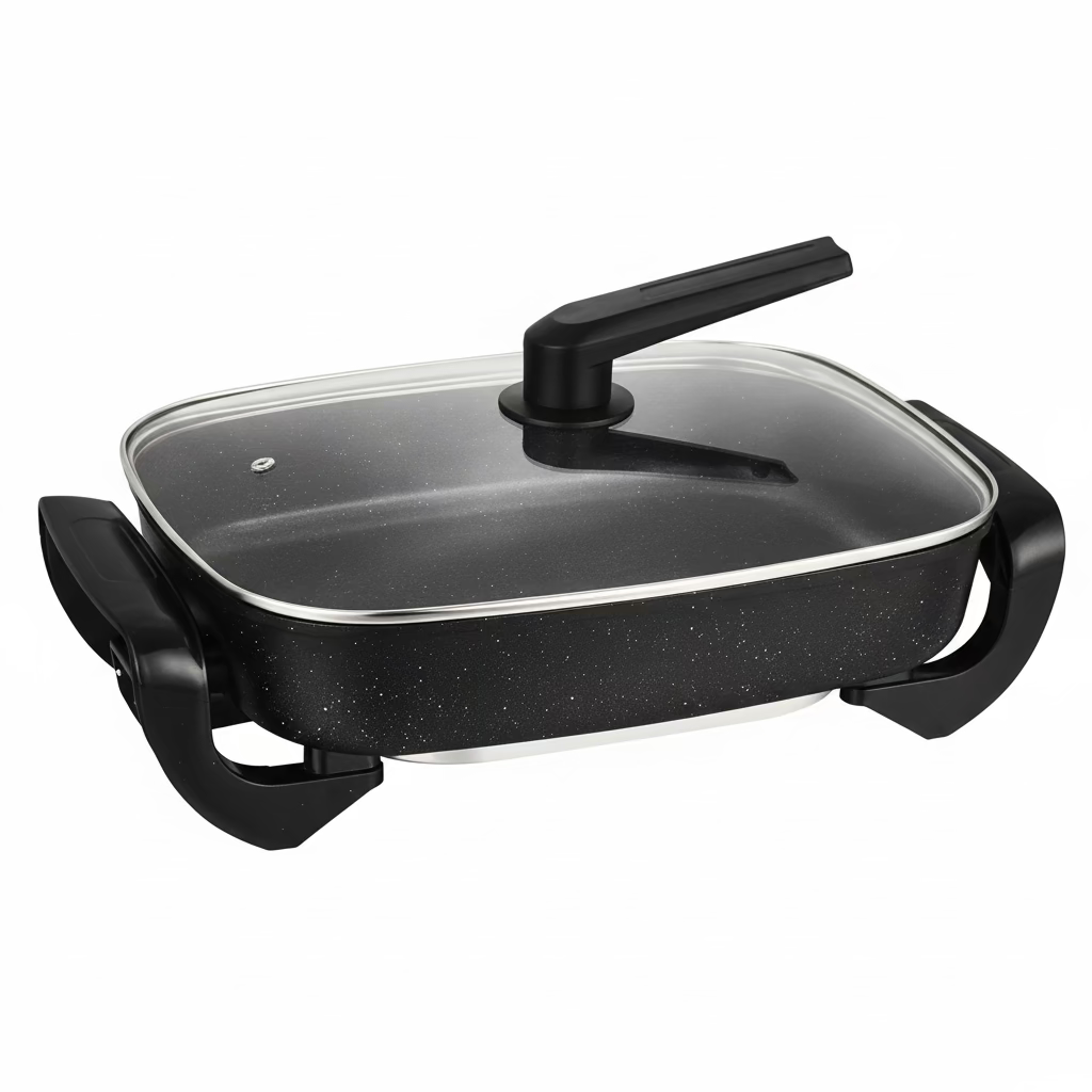 Denne elektriske stegepande i moderne granitlook er den ideelle løsning til dig, der ønsker hurtig, fleksibel og energieffektiv madlavning. Med sin store stegeflade og kraftfulde varmeelement er den perfekt til både hverdag og fest – uanset om du steger, simrer, damper eller blot holder maden varm.