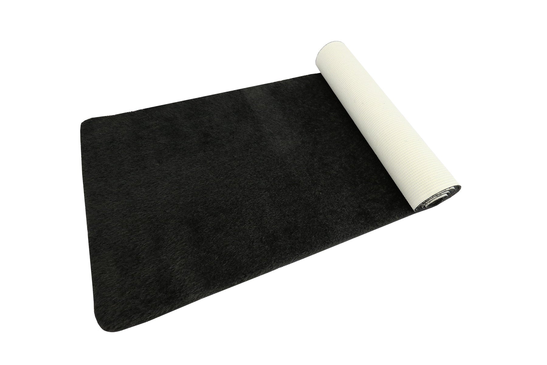 Det sorte shaggy tæppe er en smuk og stilfuld tilføjelse til ethvert hjem.