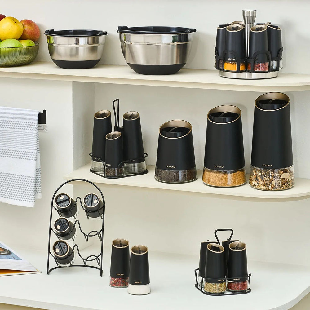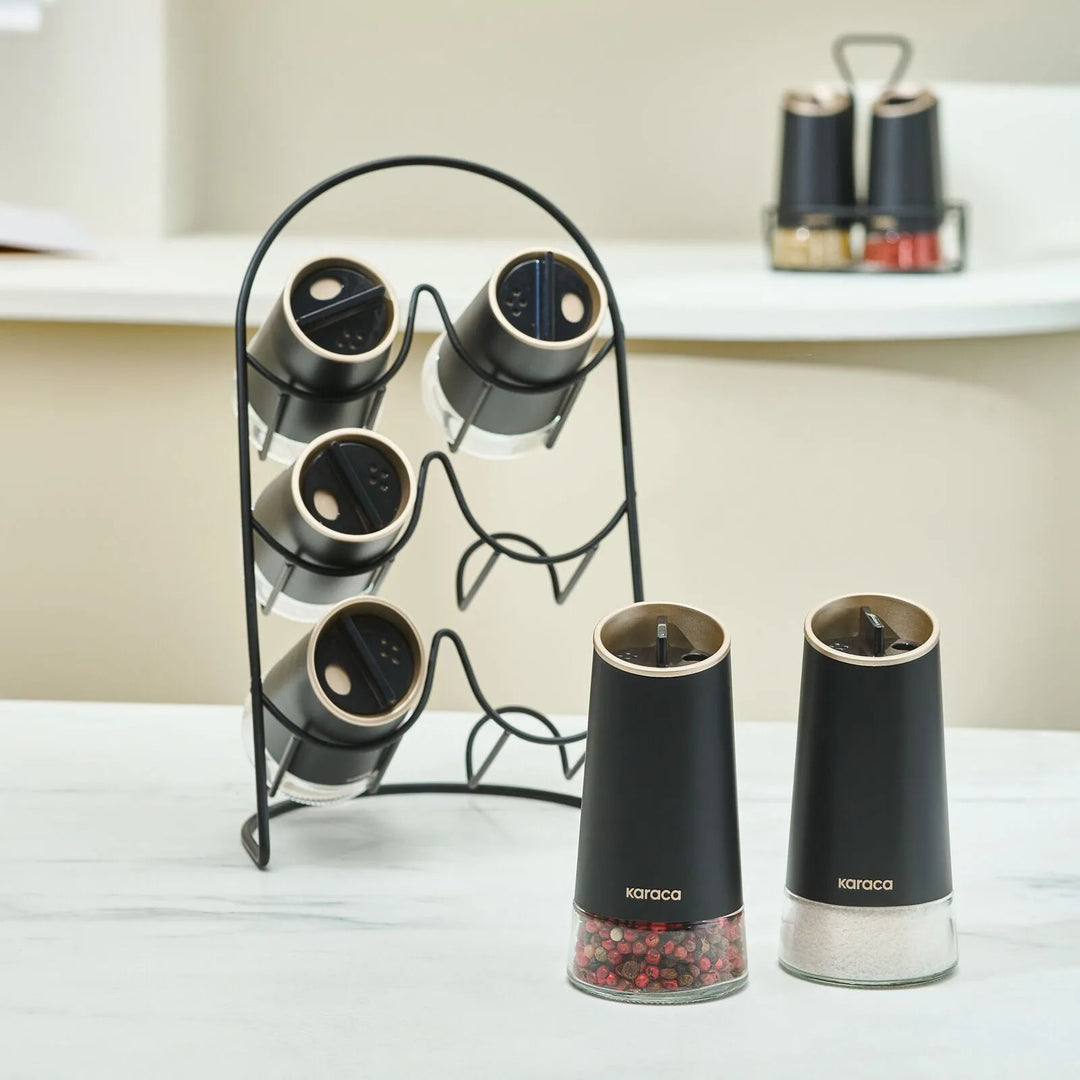Karaca Waltz Glas Krydderisæt m/Metal Stativ - 7 Dele - Sort