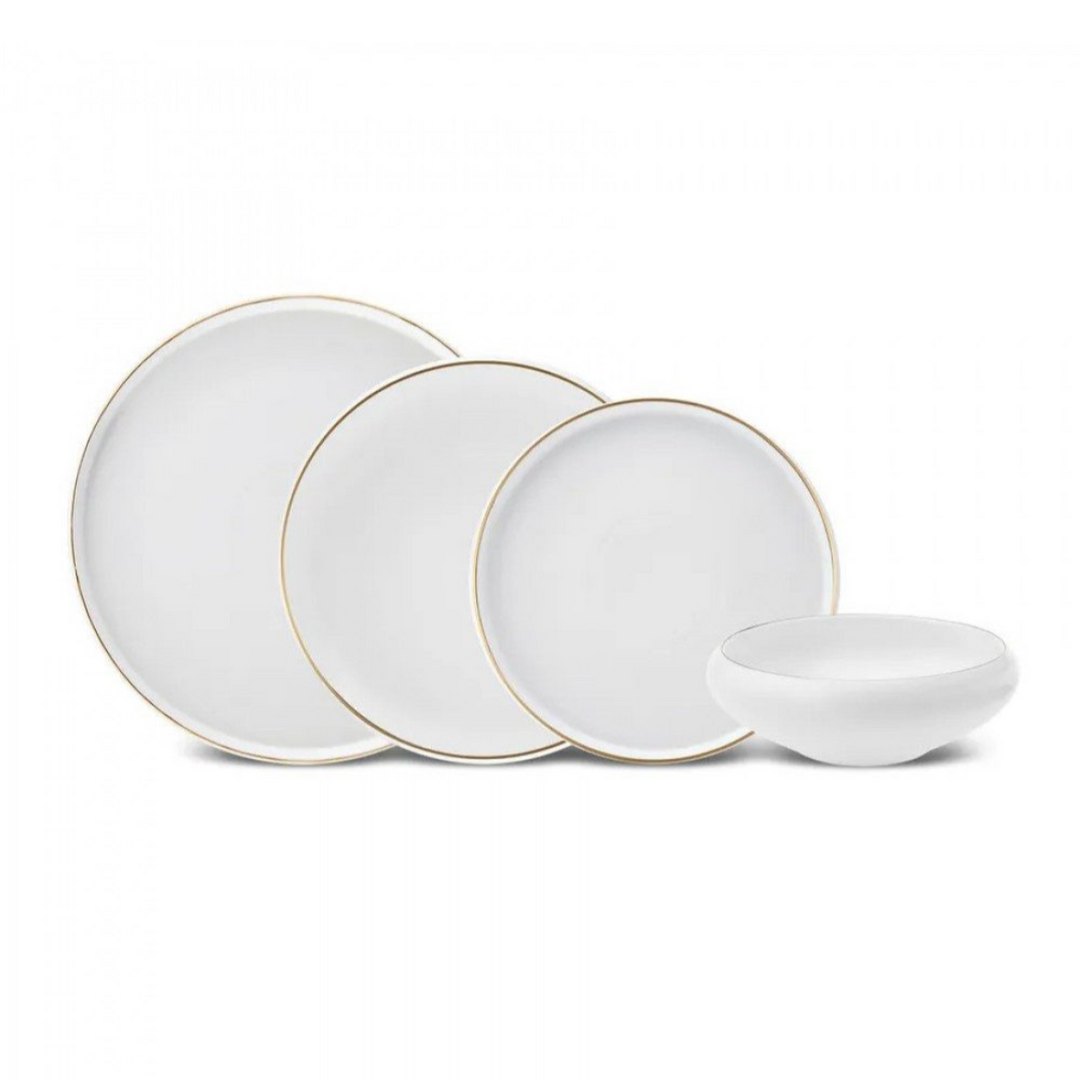 Porcelænssæt 6 Pers. 25 Dele Hvid m/Guldkant - Almina Mondo Gold Line