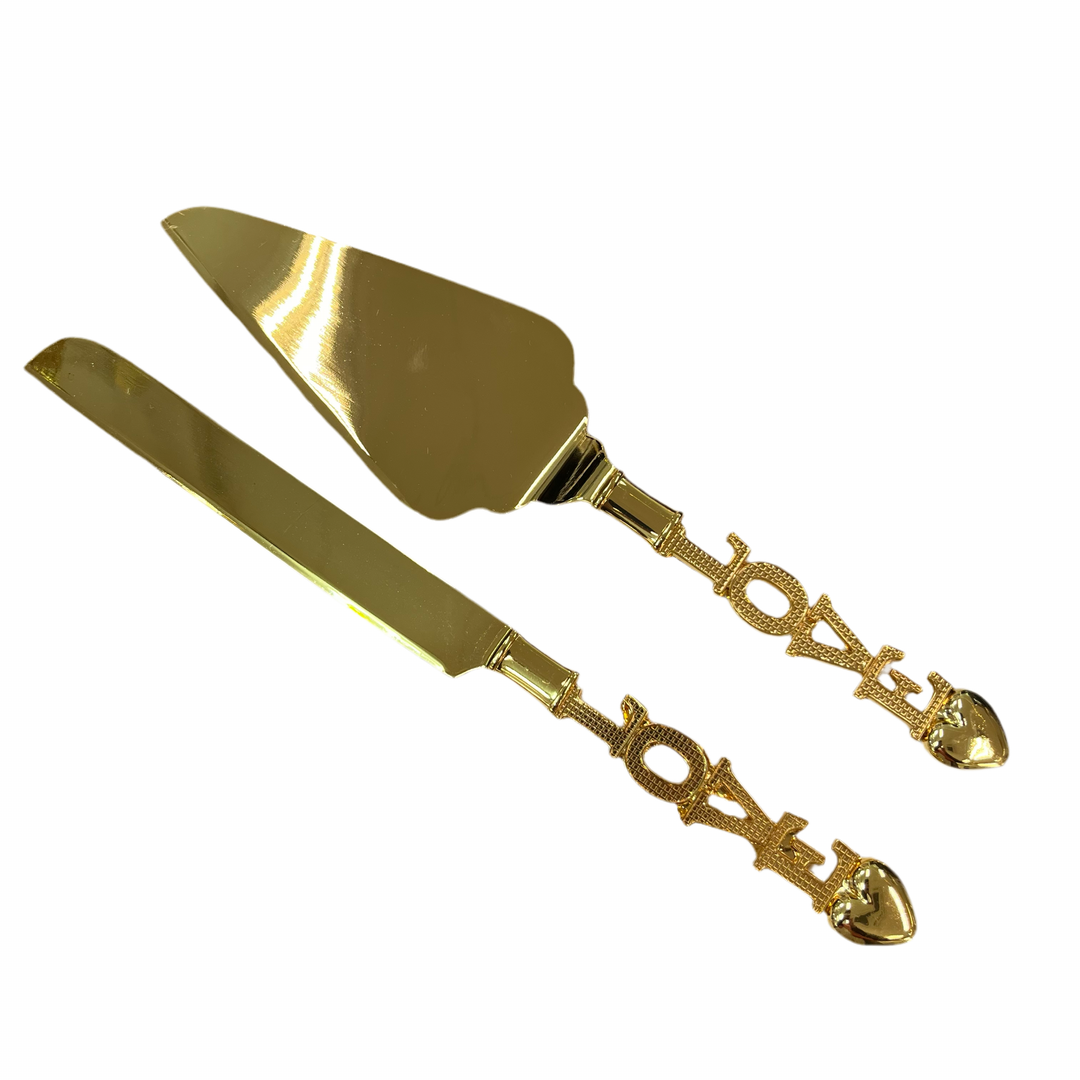 Almina Kagekniv og -Spadesæt Guld m/"Love"-motiv