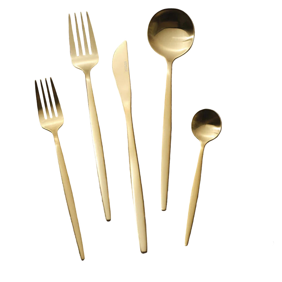 Den matte guldoverflade tilføjer et moderne og sofistikeret udtryk, der passer perfekt til både klassiske og moderne borddækninger. Det subtile metalliske skær skaber en følelse af luksus og varme, uden at virke prangende.