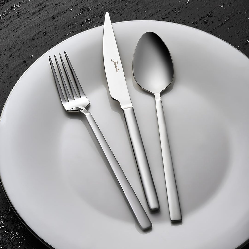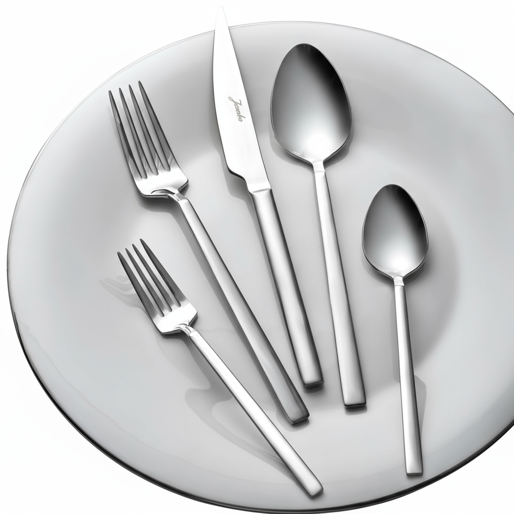Jumbo 1800 er et stilfuldt og komplet bestiksæt til 12 personer, designet til både hverdagsbrug og festlige middage. Sættet er fremstillet i høj kvalitet med fokus på funktionalitet, holdbarhed og æstetik. Det tidløse design gør det velegnet til enhver borddækning – klassisk såvel som moderne.