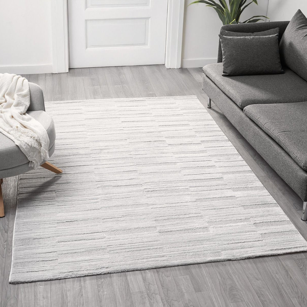 Moderne Tæppe i lysegrå farve.