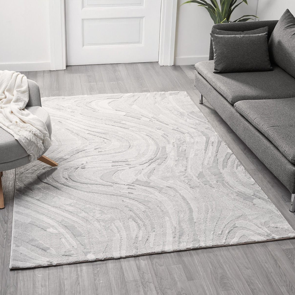 Moderne Tæppe i lysegrå farve.
