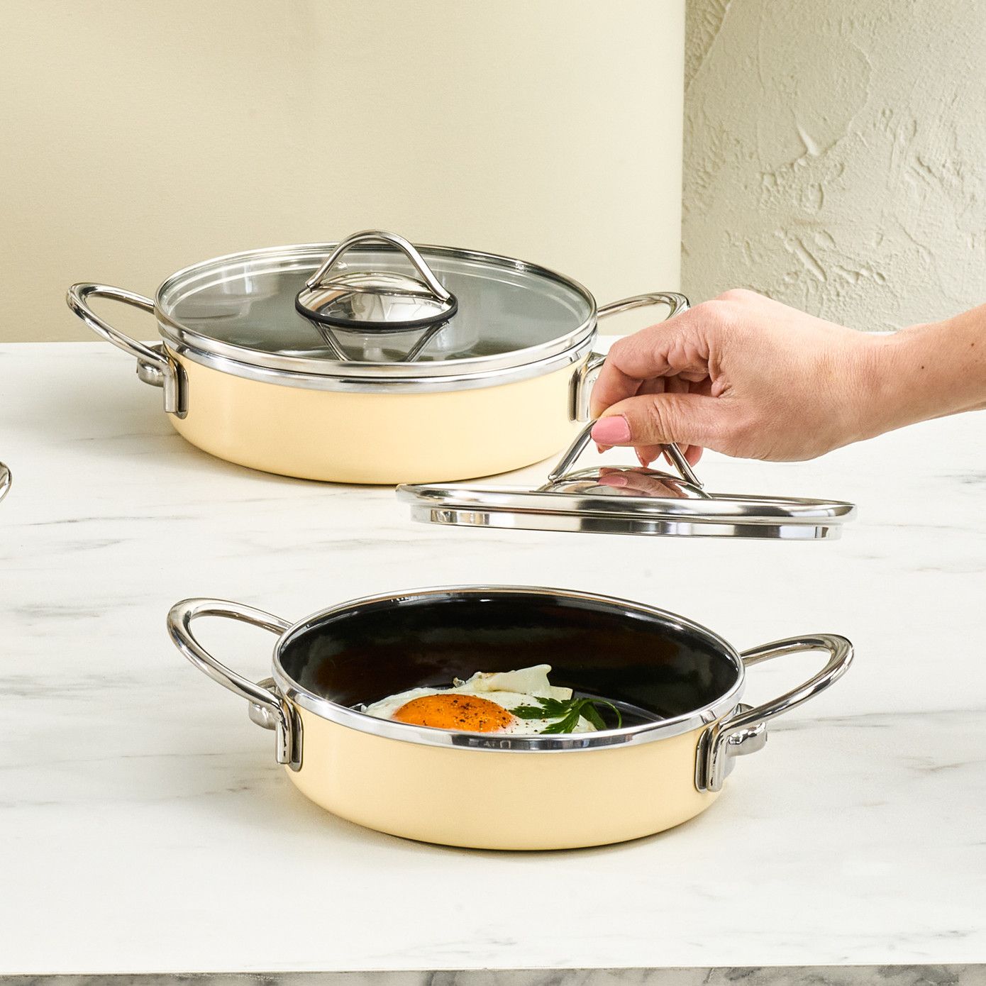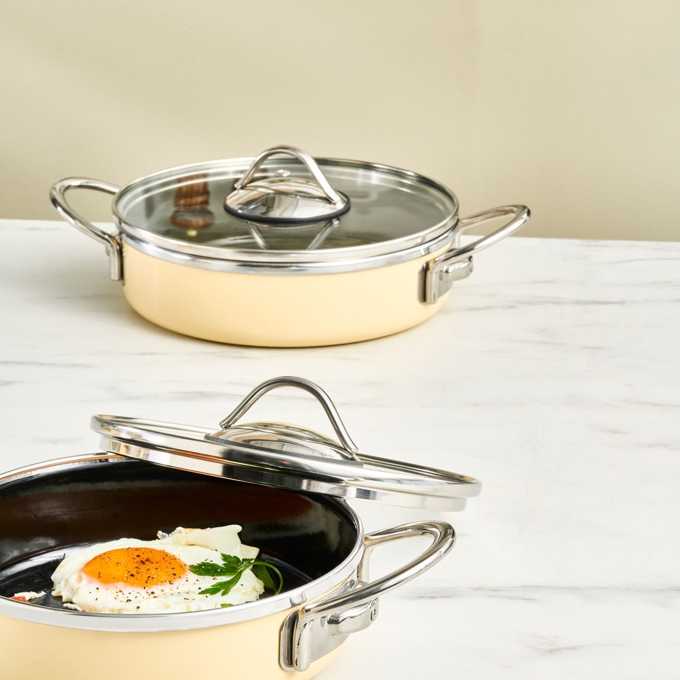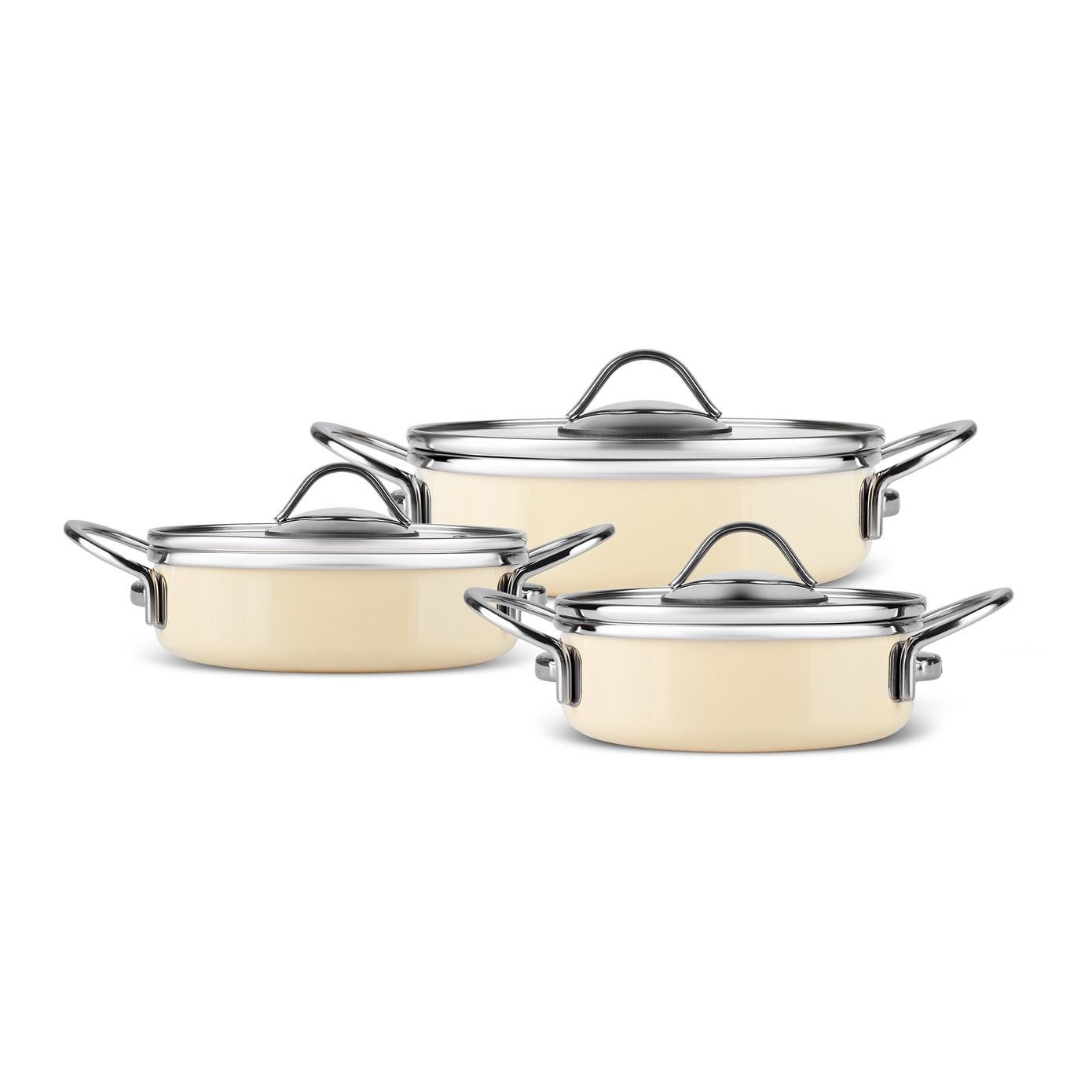 Karaca Erva Emaljeret Induktionsbaseret 6-delt Lavt Grydesæt, Cremefarvet