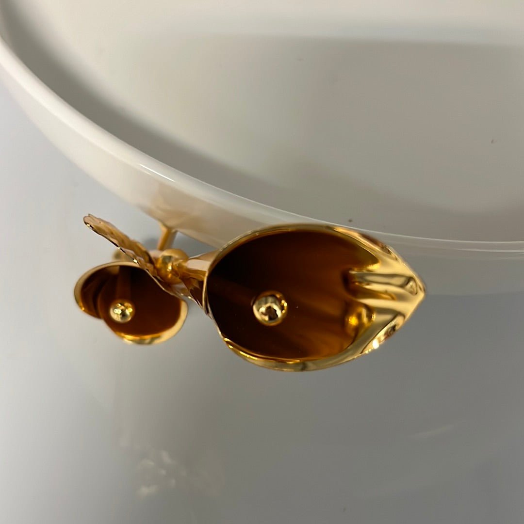 Fremstillet i porcelæn med dekorativ metalfod