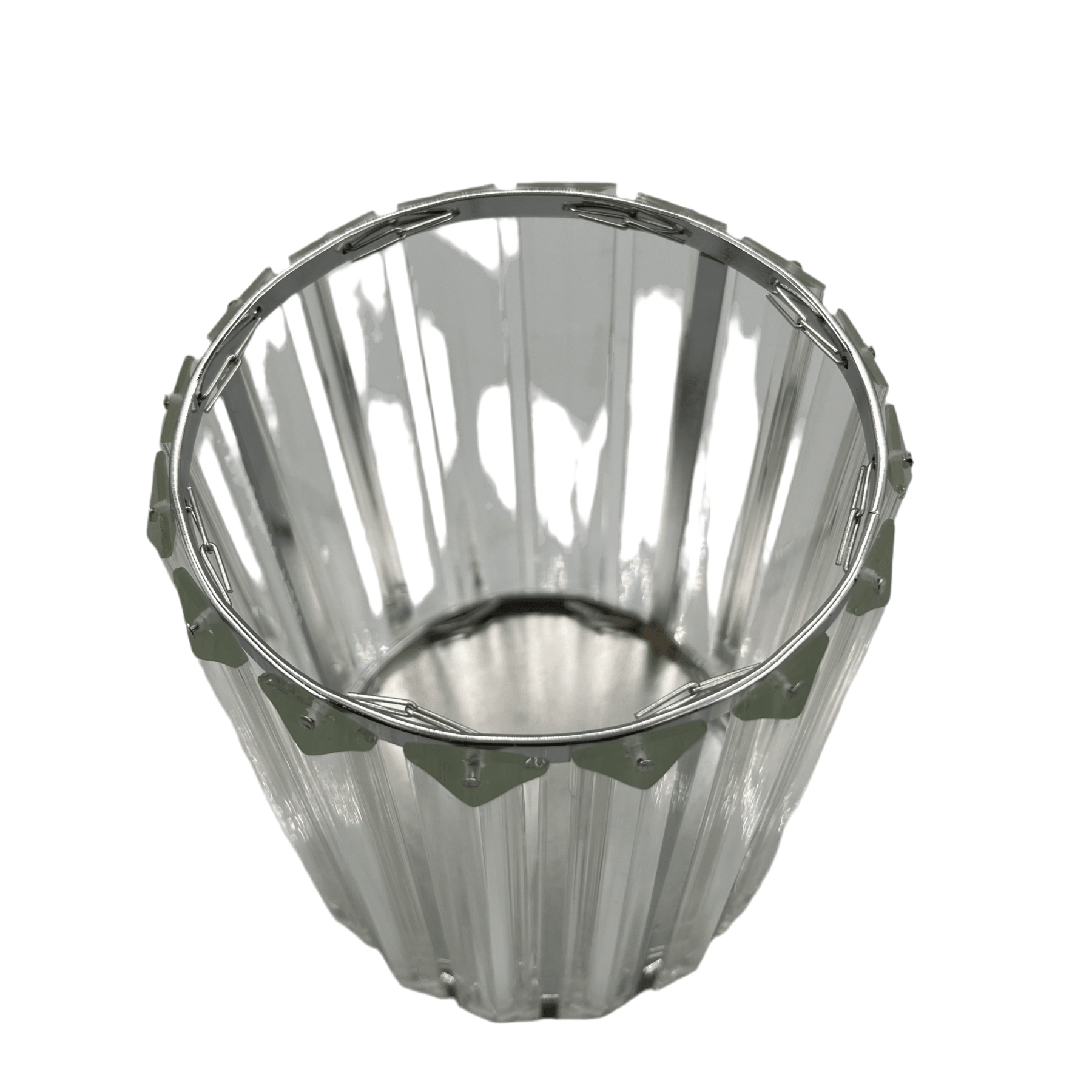 Elegant og stilfuld høj lysestage i sølv og glaskrystaller fra Deco Vien.