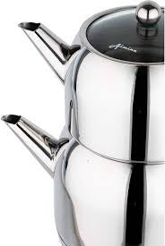 Ideel til brygning af tyrkisk te. Sættet består af en under- og en overkande med glaslåg.