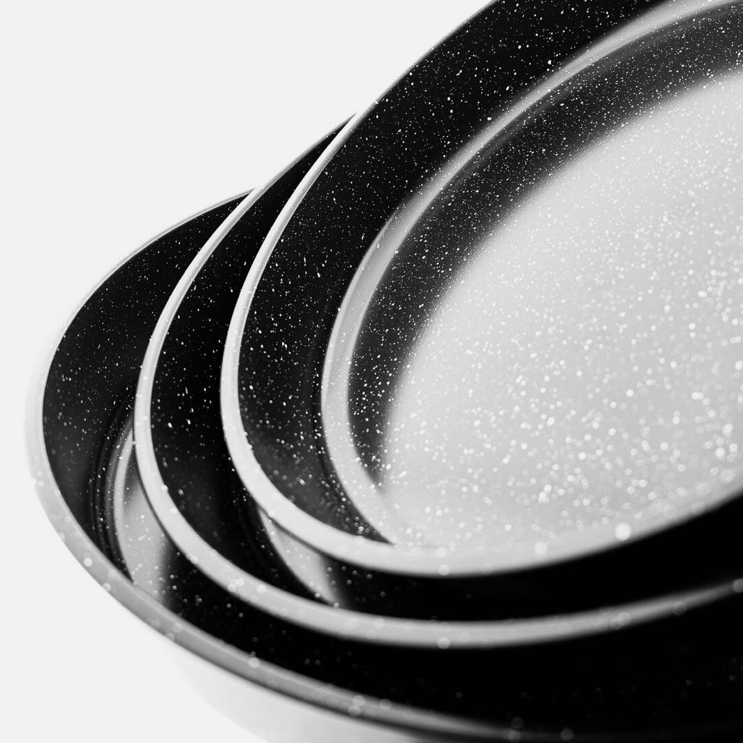 Dette sæt med 3 bageplader i sort granit giver dig fleksibiliteten til at vælge den rigtige størrelse afhængigt af dine behov.