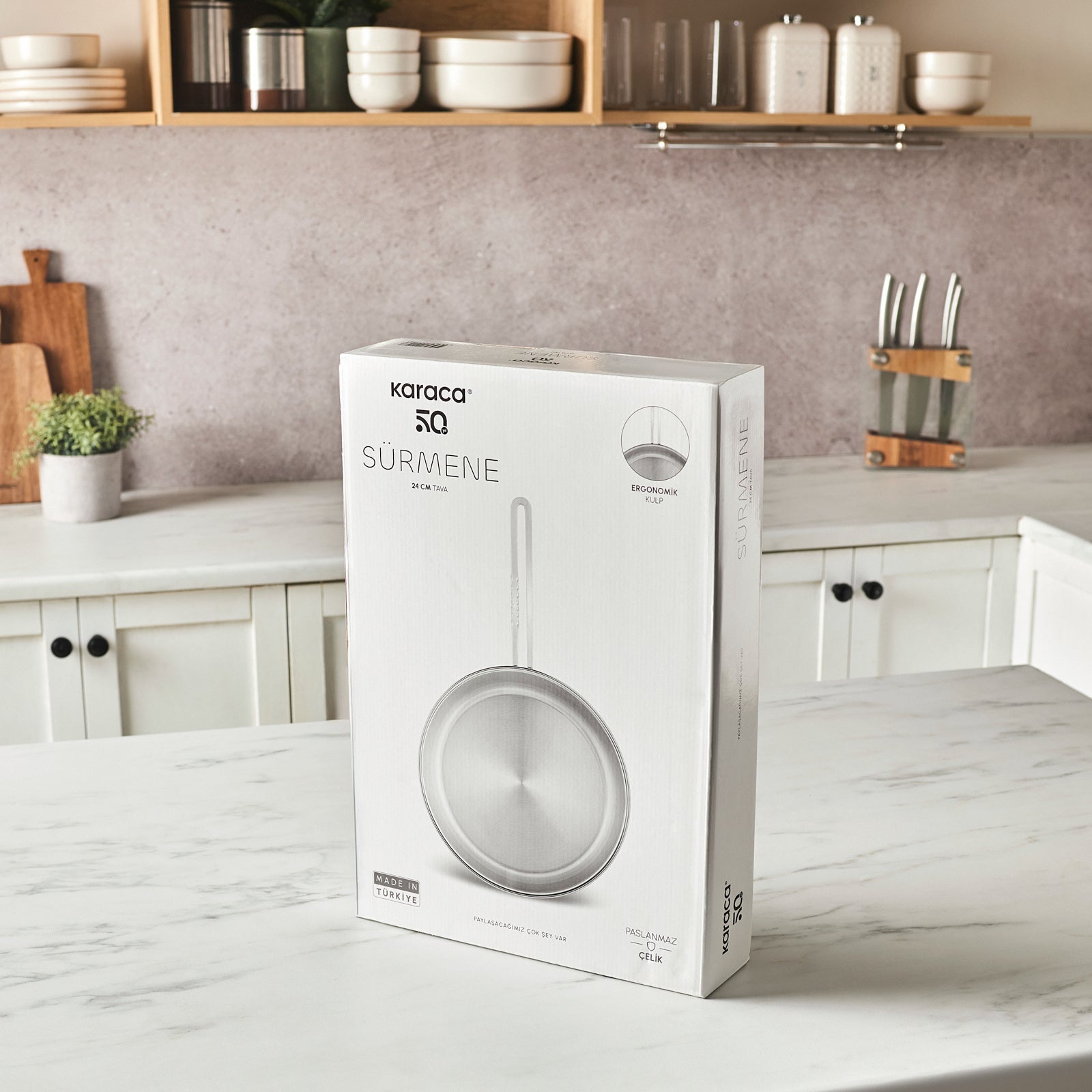 Karaca Sürmene stålpande på 26 cm er et solidt og funktionelt valg til daglig madlavning. Den robuste stålkonstruktion sikrer jævn varmefordeling og lang holdbarhed, hvilket gør den ideel til stegning af kød, grøntsager, æg og meget mere.