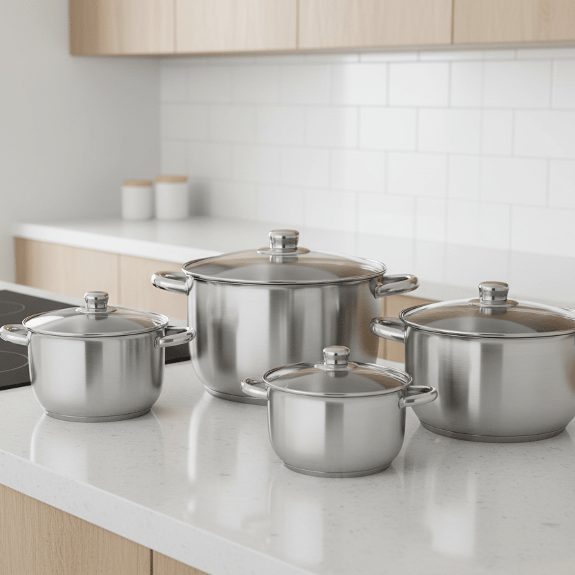 Michelino Berlin Grydesæt – 8 Dele i Satineret Rustfrit Stål