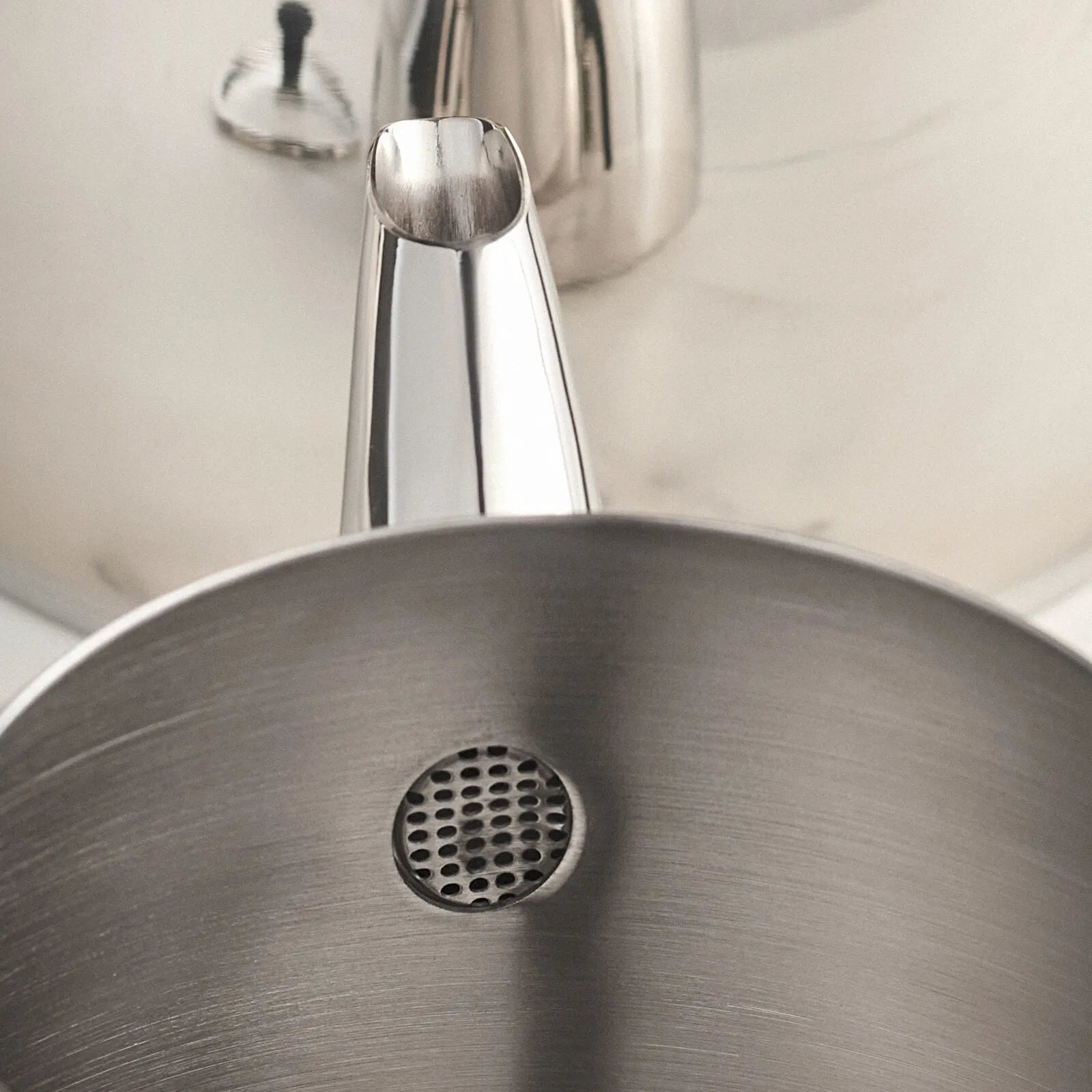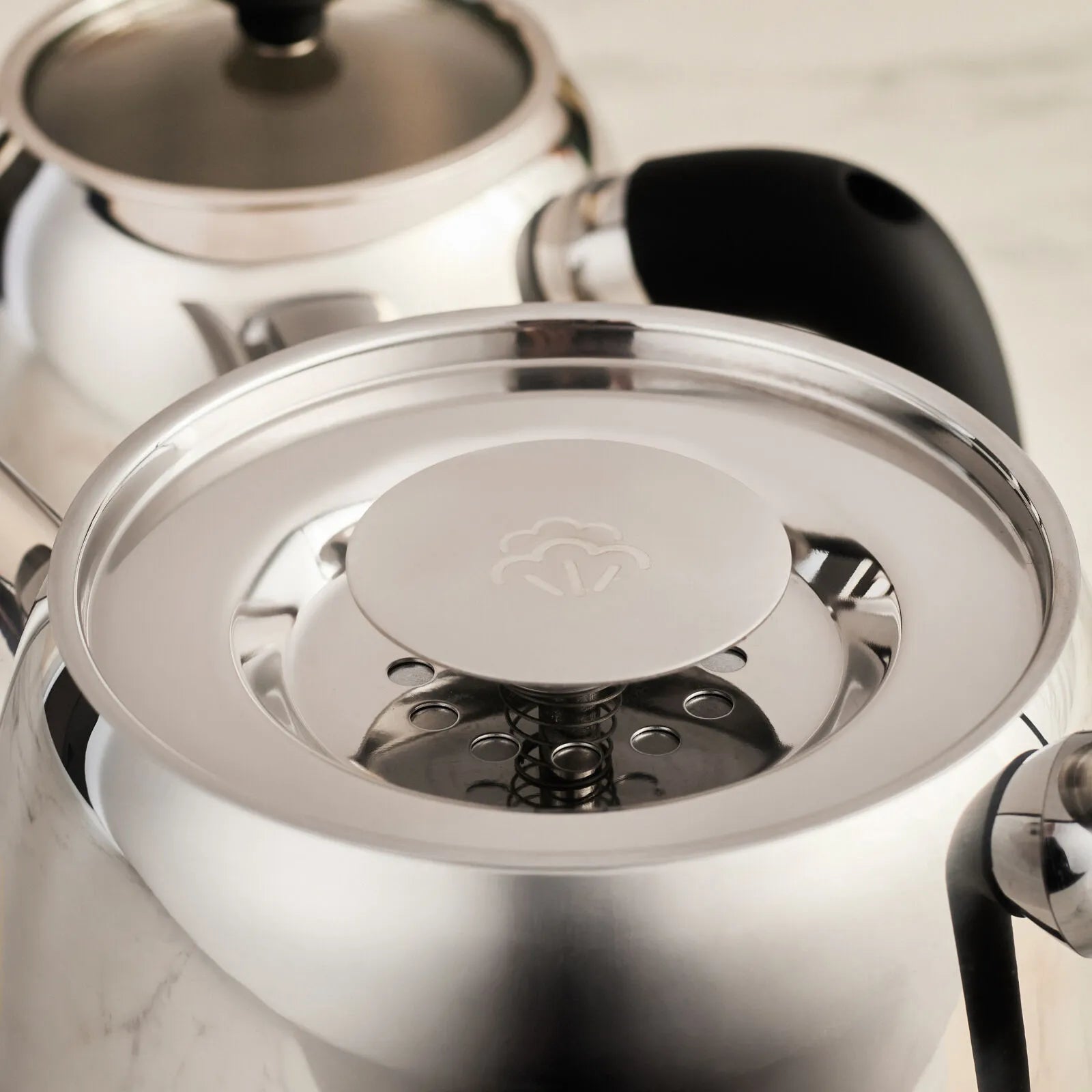 Den induktionsvenlige bund giver en jævn og effektiv varmefordeling, så vandet opvarmes hurtigt og energibesparende. Det praktiske damplåg hjælper med at bevare den optimale temperatur og aroma under brygningen, så du får en fyldig og velsmagende te hver gang.