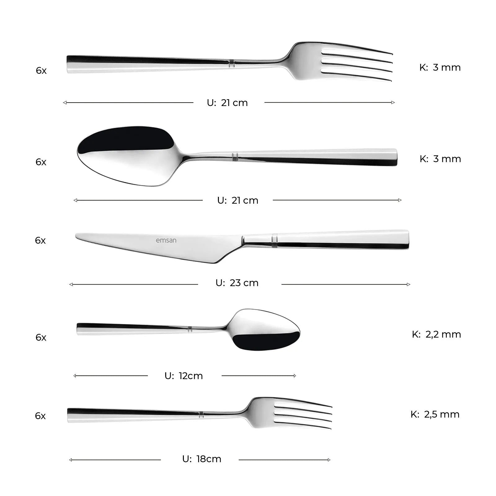 Dæk bordet med stil og kvalitet med Emsan Penta 30 Dele Bestiksæt. Det elegante og tidløse design passer perfekt til både hverdagsbrug og festlige anledninger. Fremstillet i slidstærkt stål sikrer sættet lang holdbarhed og en flot finish, der bevarer sit udtryk over tid.