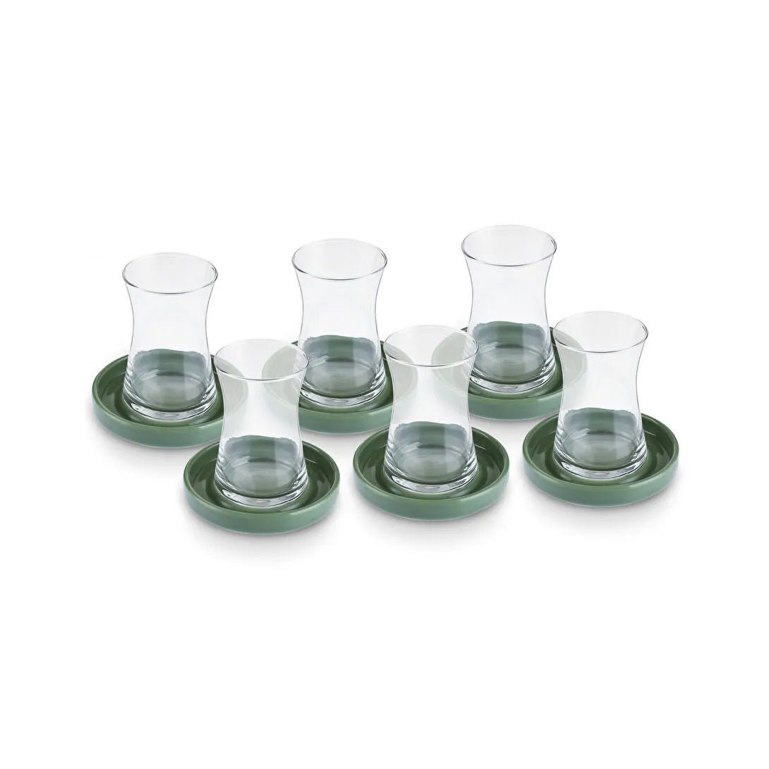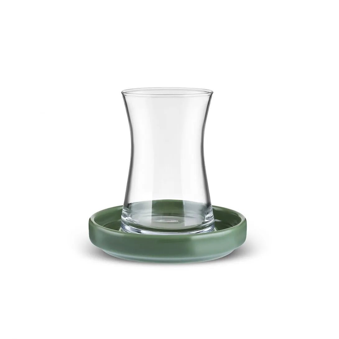 Et klassisk og elegant teglassæt fra Karaca Prato, der kombinerer transparente glas med smukke grønne porcelænsunderkopper. Perfekt til både daglig brug og servering for gæster.