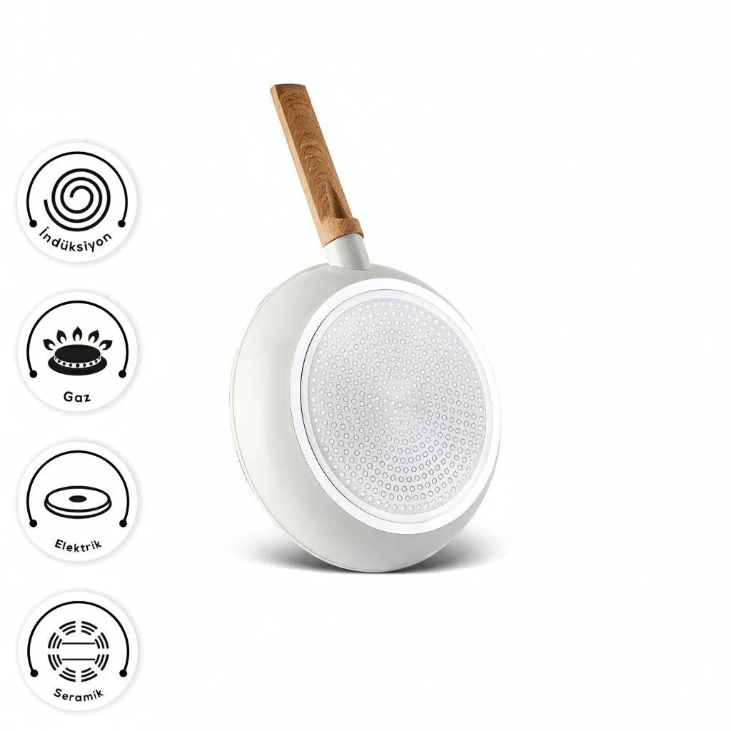 Oplev en ny standard inden for non-stick madlavning med Karaca x Refika Swiss Crystal 22 cm pande i den elegante farve Mandelcreme. Panden er fremstillet med den innovative SwissCrystal-belægning – den første og eneste af sin slags i Tyrkiet – udviklet med schweiziske krystaller for maksimal ydeevne og holdbarhed.