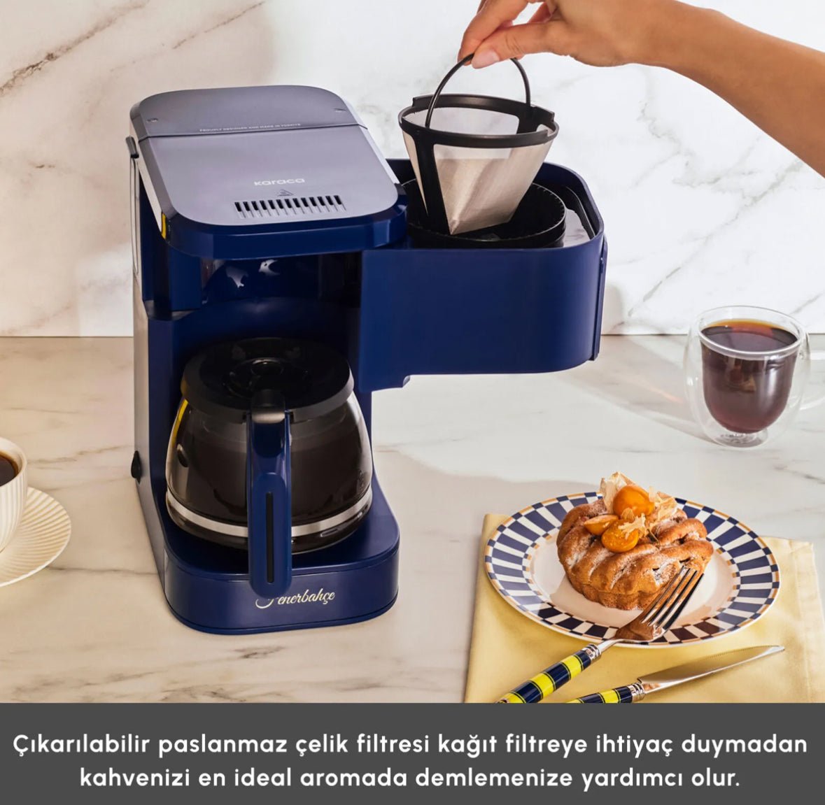 Karaca Just Coffee Aroma 2-in-1 filterkaffe- og temaskine er en praktisk og alsidig maskine, der giver dig mulighed for at brygge både klassisk filterkaffe og te på en enkel og effektiv måde. Maskinen er designet med brugervenlighed for øje og passer godt til daglig brug i hjemmet, kontoret eller ved sociale sammenkomster.
