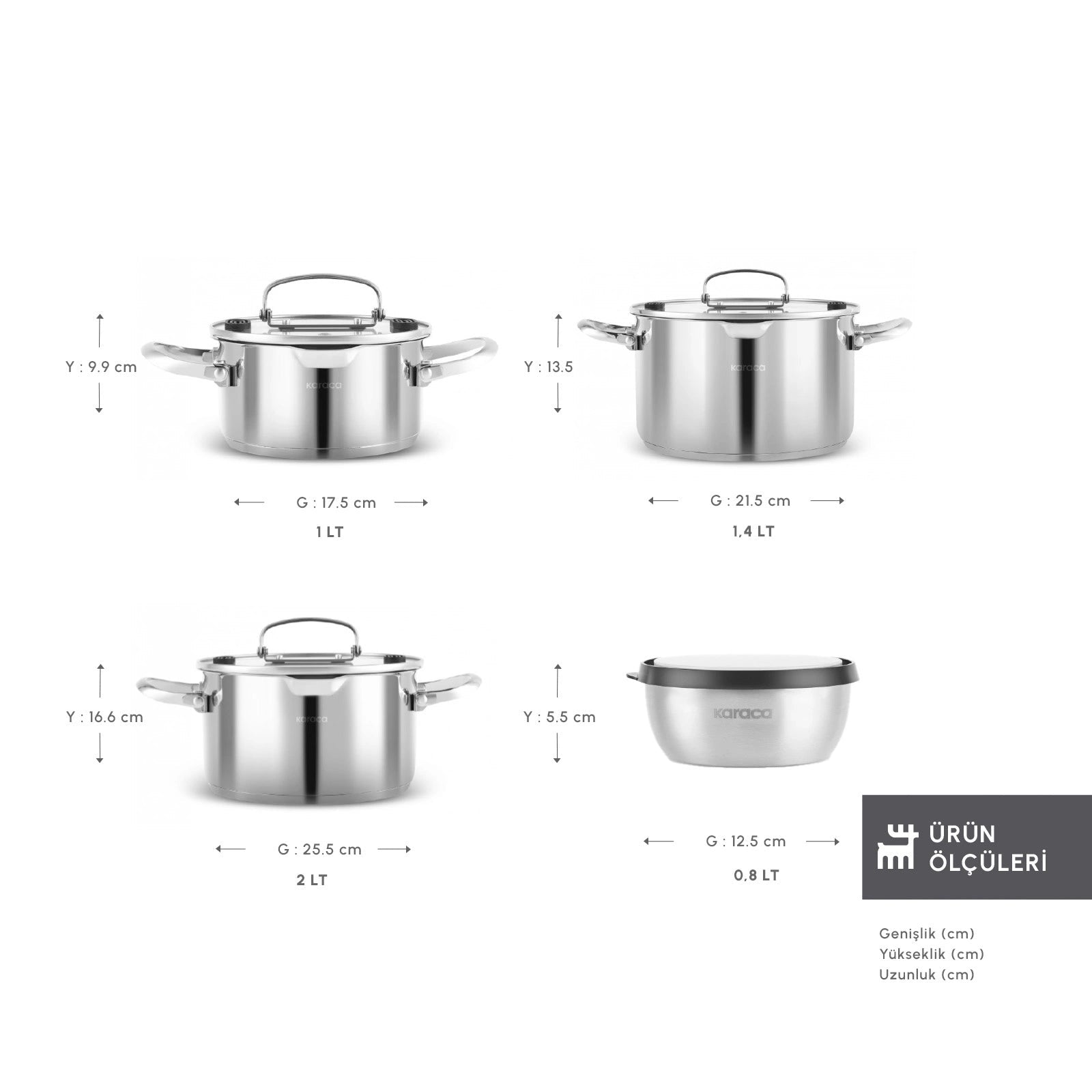 Karaca Burgaz grydesættet kombinerer høj kvalitet med smart og pladsbesparende design. Fremstillet i slidstærkt 18/10 rustfrit stål, er gryderne modstandsdygtige over for ridser og høje temperaturer og sikrer lang levetid i det daglige køkken.