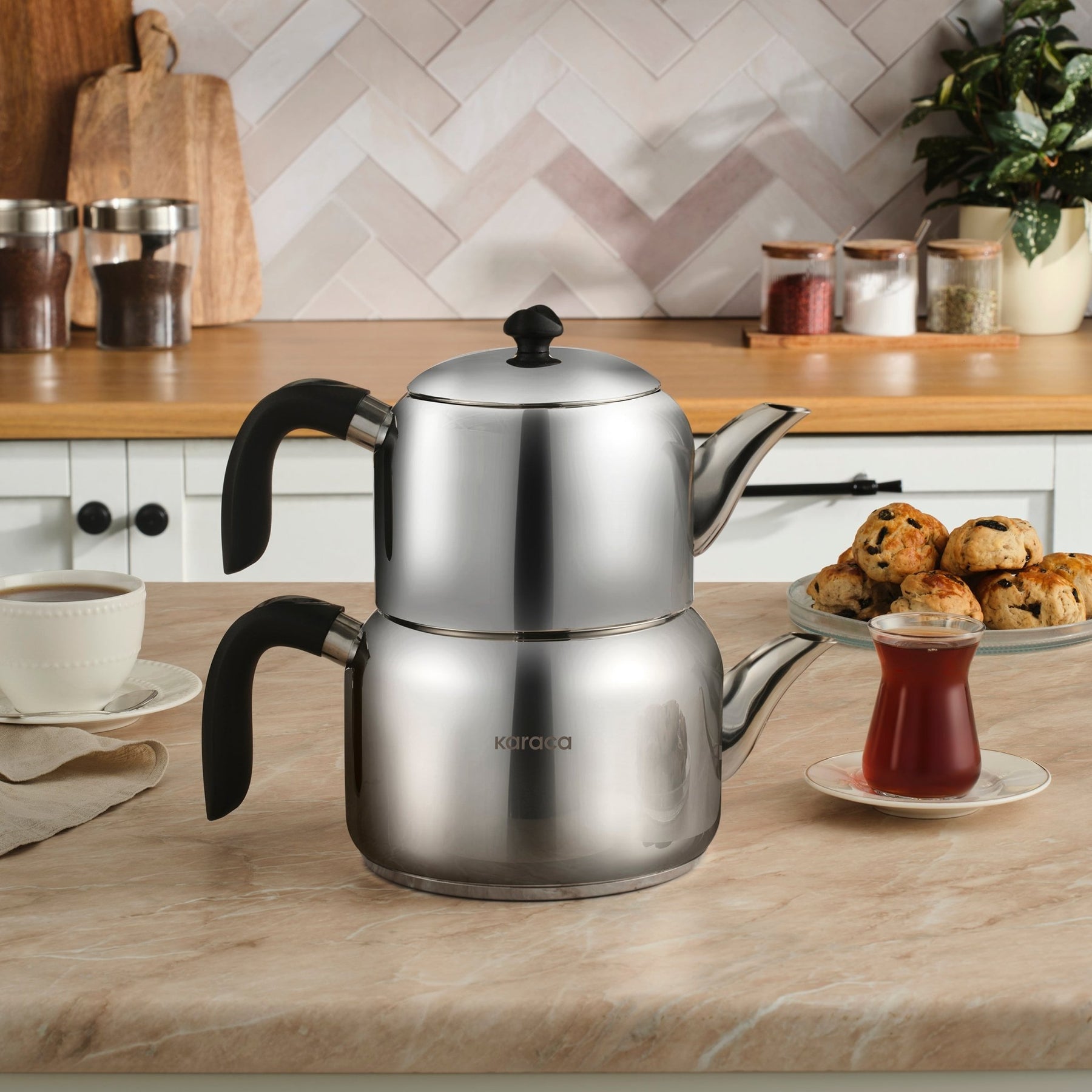 Gør den daglige testund både praktisk og stilfuld med Karaca Laris Maxi Tekandesæt. Dette elegante 3-delte sæt kombinerer traditionel teglæde med moderne design og er perfekt til både hverdag og større sammenkomster.
