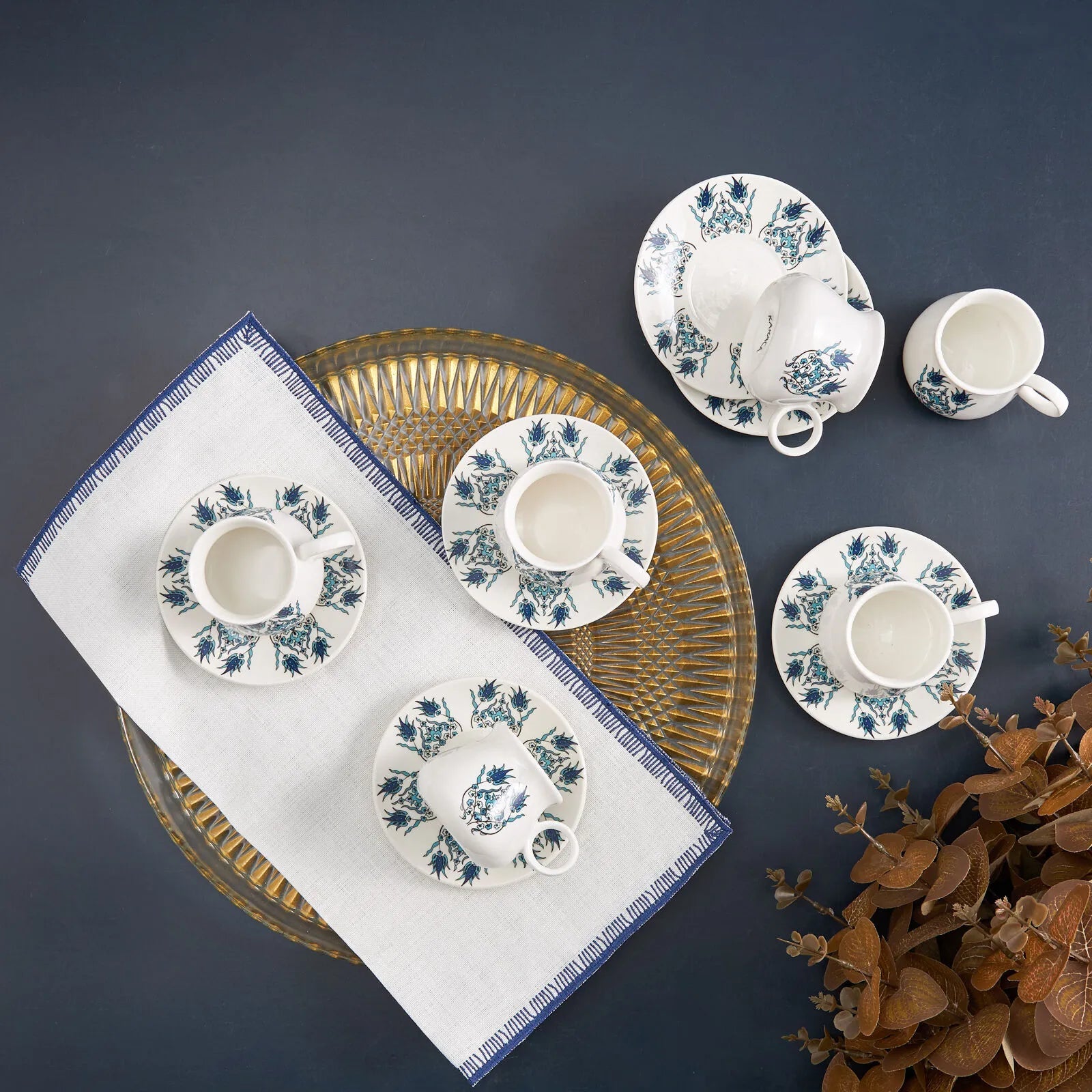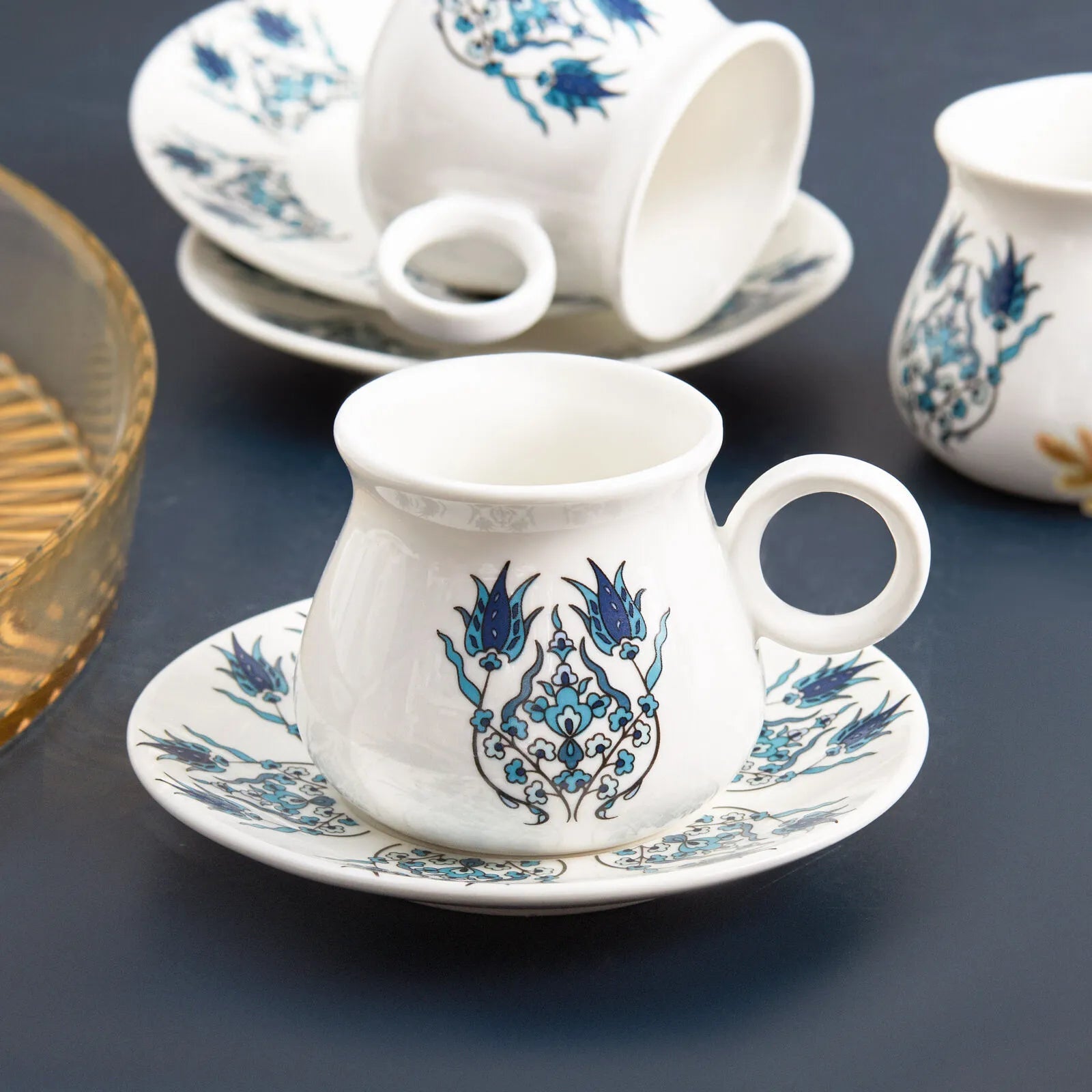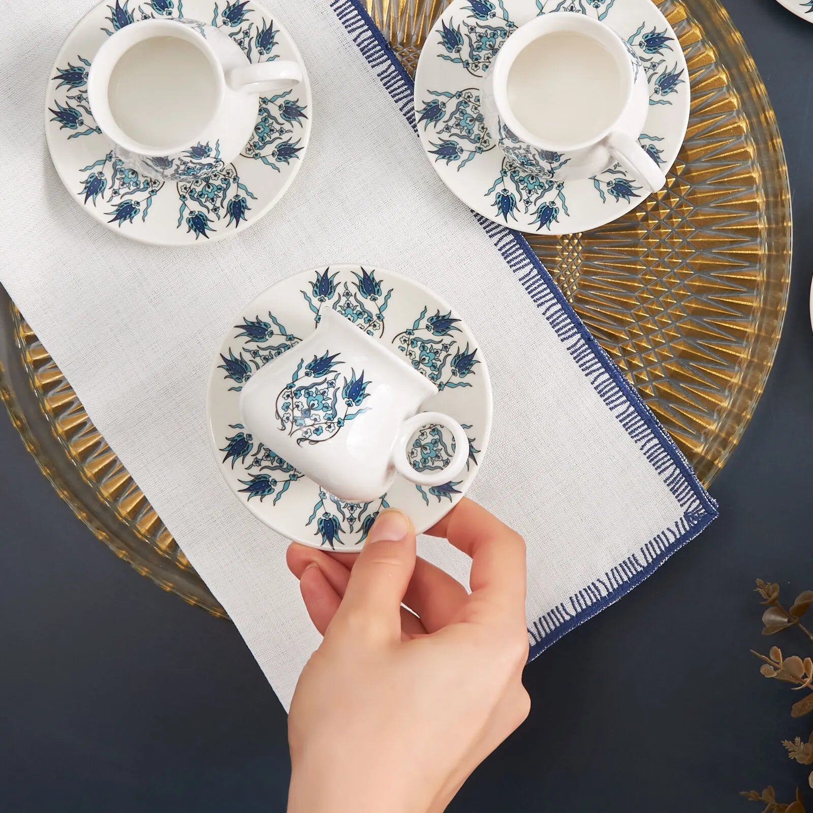Servér din kaffe med elegance med Karaca Bursa Espressosæt. Det stilfulde og tidløse design gør sættet perfekt til både hyggelige hverdagsstunder og når du får gæster. Den ideelle kapacitet på 90 ml passer perfekt til både tyrkisk kaffe og espresso.