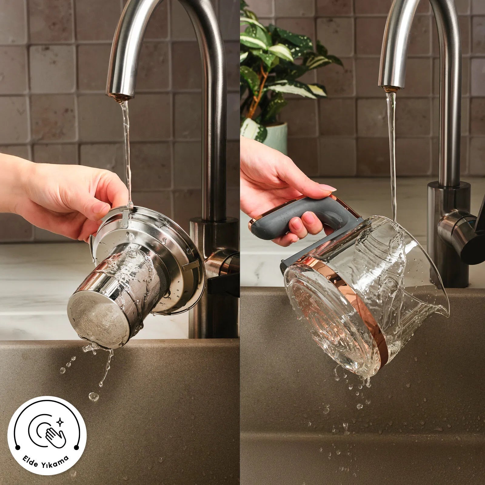 Den integrerede varmtvandshane giver nem og klassisk servering uden at løfte tekanden.