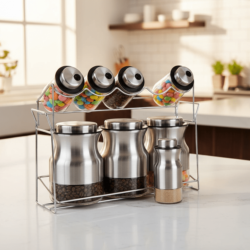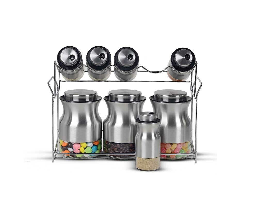 De forskellige glasstørrelser gør sættet velegnet til både ofte anvendte krydderier og større mængder som sukker, mel eller salt. Det enkle design passer ind i de fleste køkkener og giver et ryddeligt og elegant udtryk.