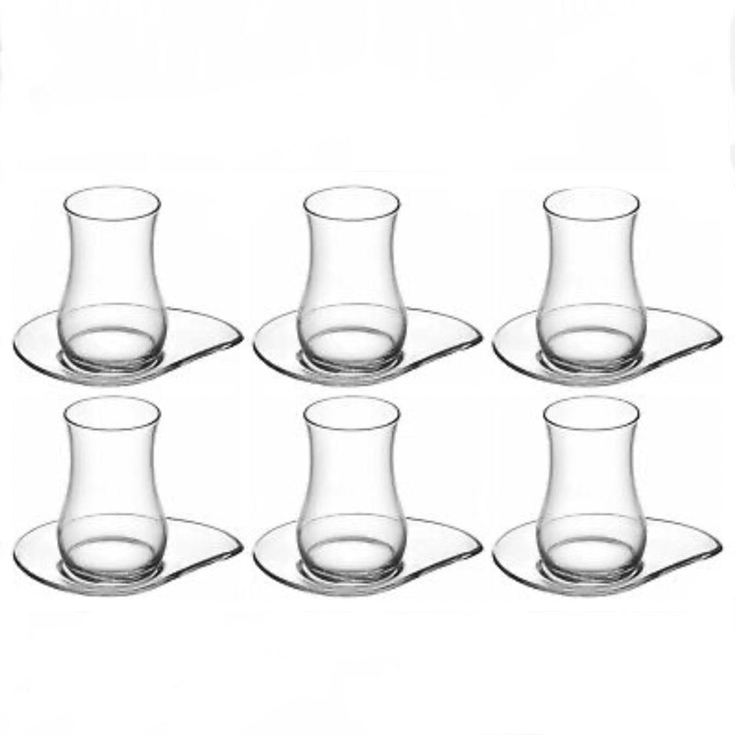 Opgrader dine te-stunder med det smukke LAV Eva teglassæt, der kombinerer moderne elegance med funktionelt design. Sættet består af 6 teglas og 6 matchende underkopper, alle udført i klart glas, som fremhæver farven og aromaen i din yndlingste.