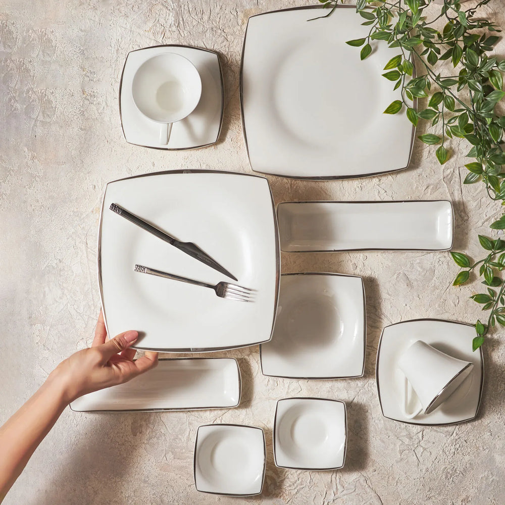 Karaca Epsilon Porcelænssæt Sølvkant - 76 dele 12 personer