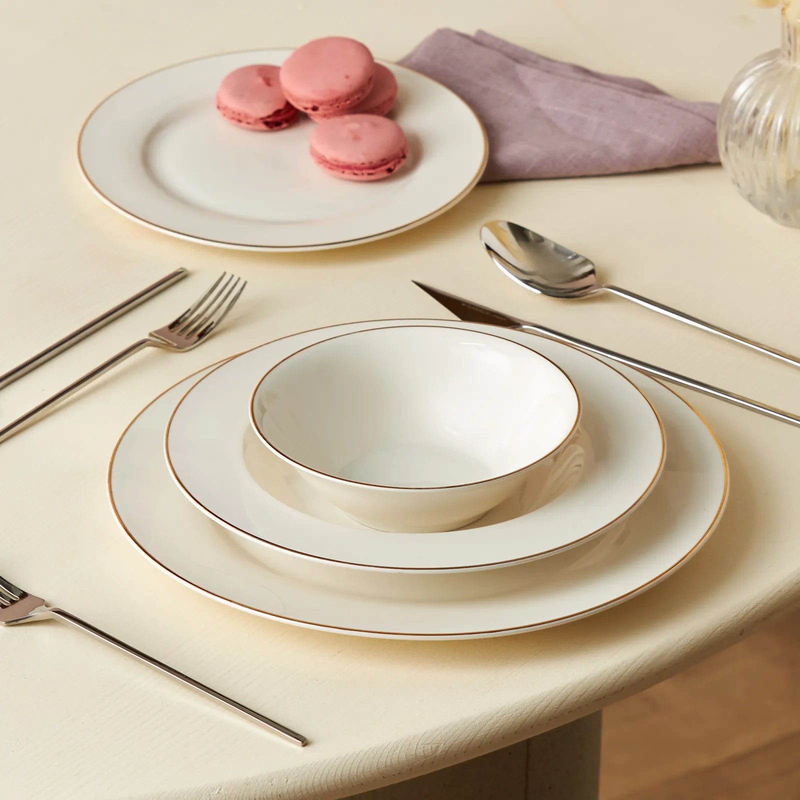 Skab en elegant og tidløs borddækning med Karaca Rebeca porcelænssættet. Det klassiske hvide porcelæn er udsmykket med en fin guldkant, der giver et eksklusivt udtryk uden at virke prangende. Perfekt til både hverdagsmiddage og festlige anledninger.