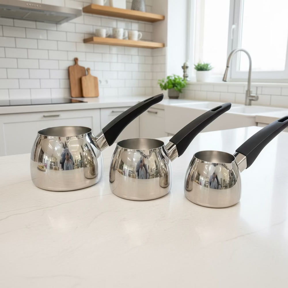 Karaca PowerSteel 316+ Tokyo Induktionskompatibelt Stål Kaffekandesæt (Cezve) - 4 Dele