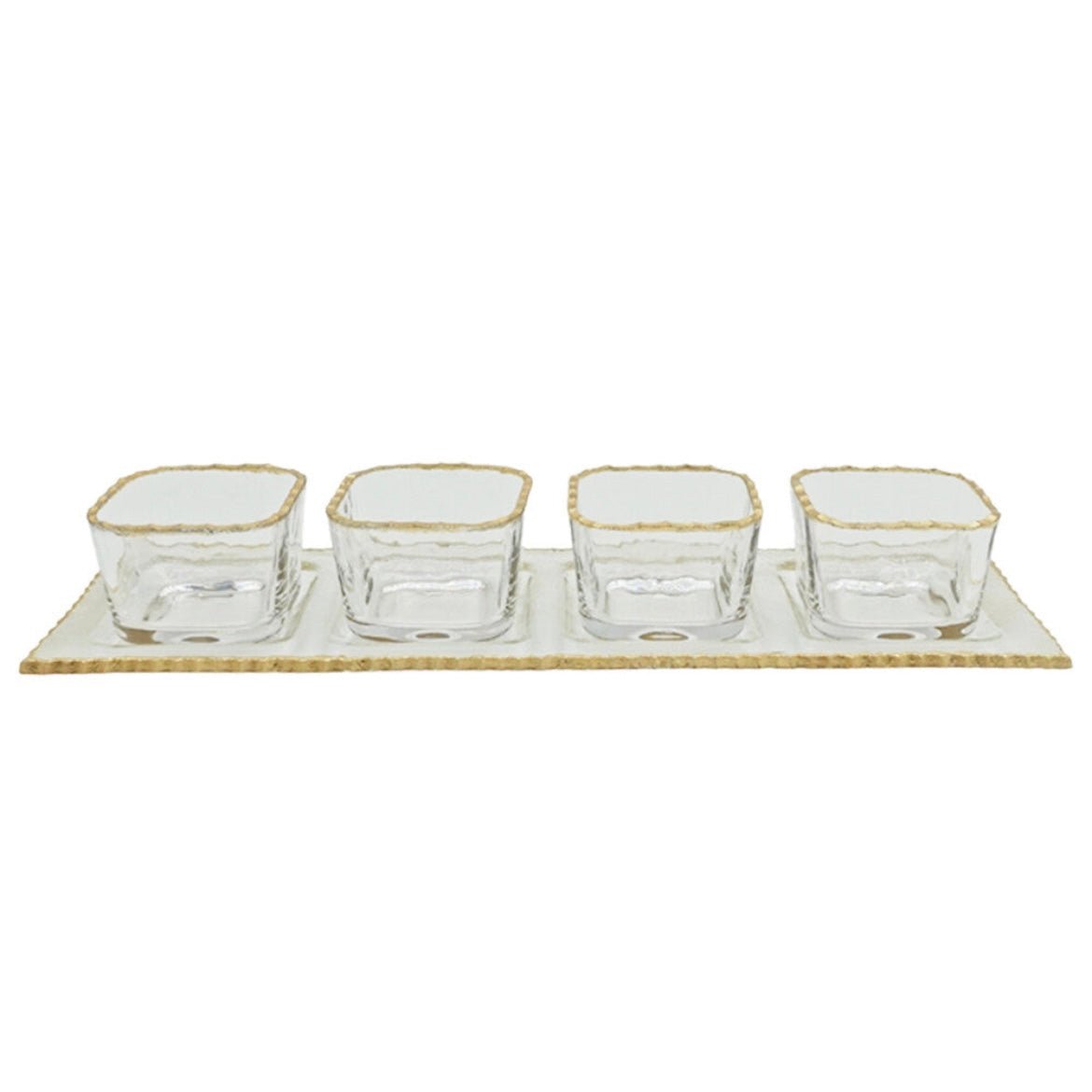 5-delt Glasskålesæt med Guldkant – inkl. Glasbakke